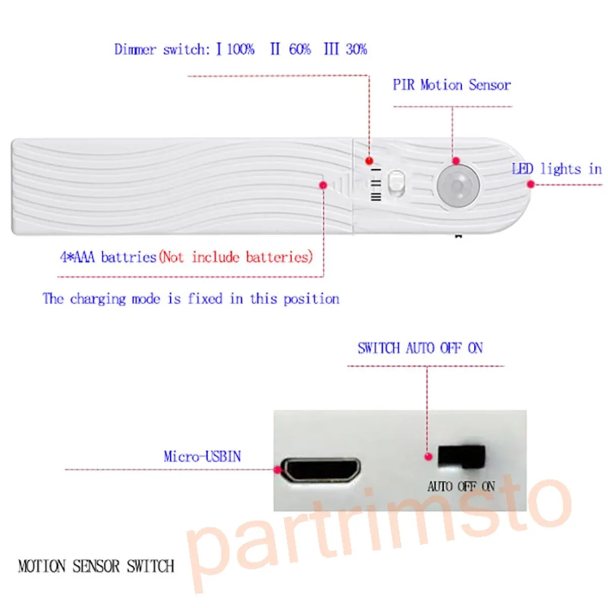 Светодиодная лента с датчиком движения, питание от USBаккумулятора,...