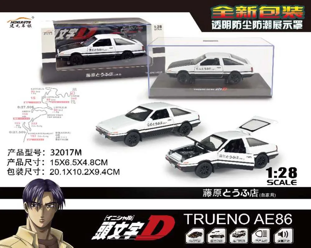 1:28 литые автомобили с обратной стороны, начальная модель автомобиля D AE86, быстрый и яростный звук и светильник, транспортные средства, подарок для детей, мальчиков