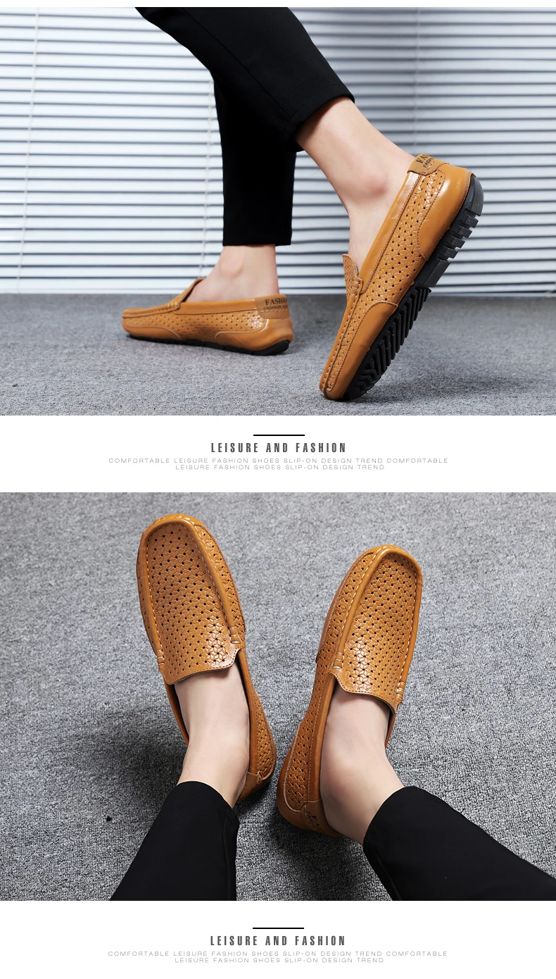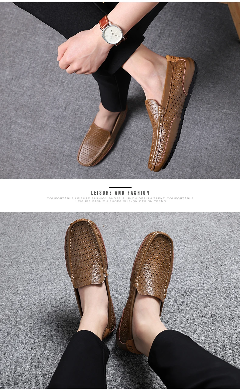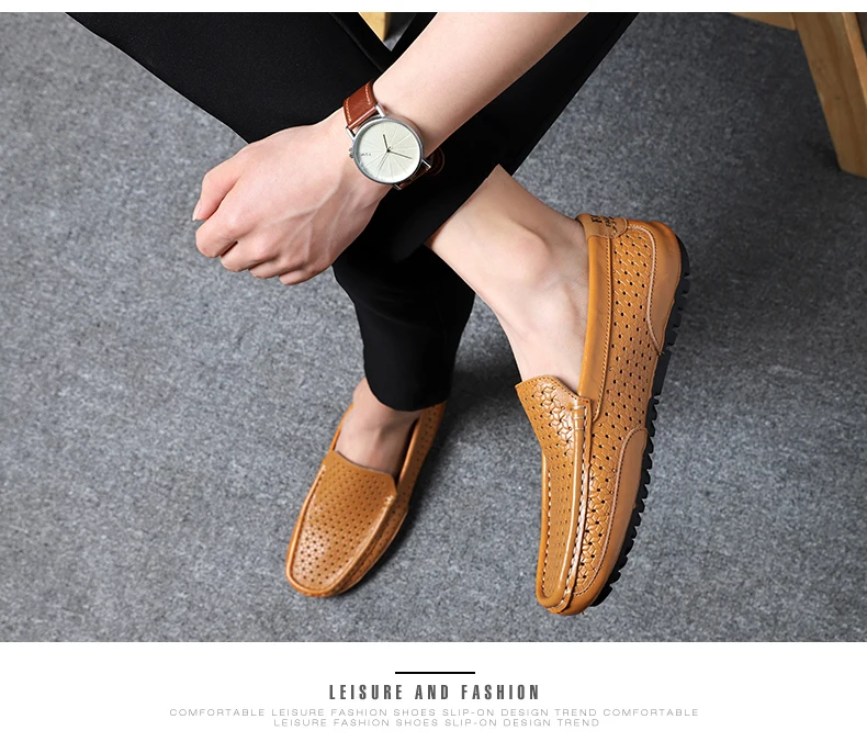 Мужская повседневная обувь, роскошная брендовая Летняя мужская обувь из натуральной кожи, Мокасины, дышащая обувь без шнурков, водонепроницаемые