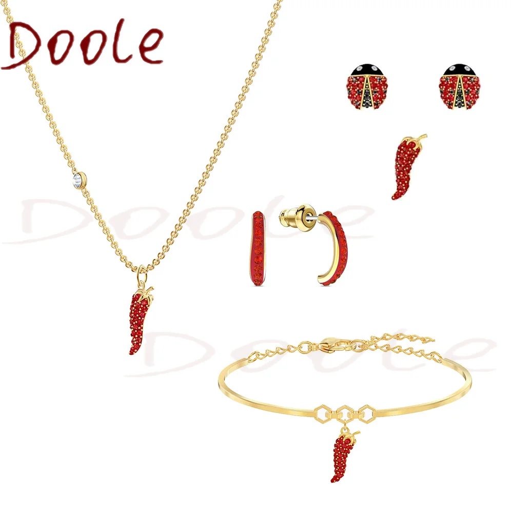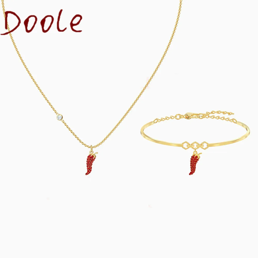 Модные ювелирные изделия SWA, набор с изображением перца, Золотое Элегантное ожерелье с красным перцем и кристаллами, Женский трендовый романтический подарок