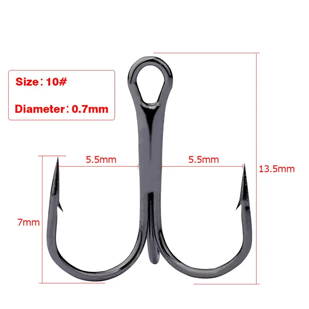 10 шт.лот 2 #4 #6 #8 #10 # черный тройной рыболовный крючок из высо...