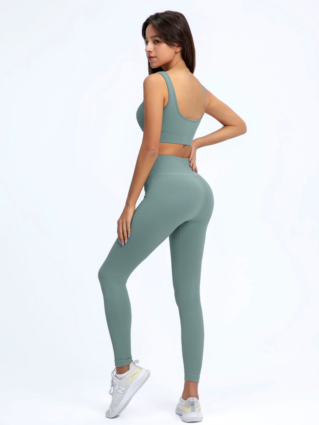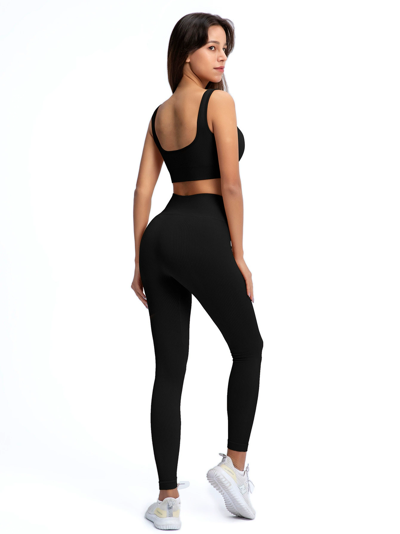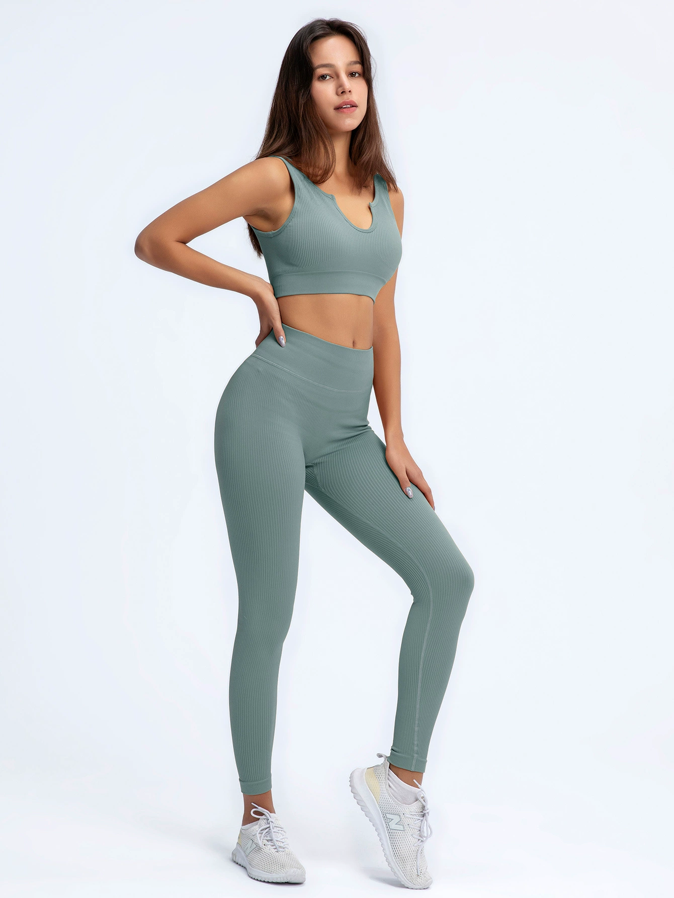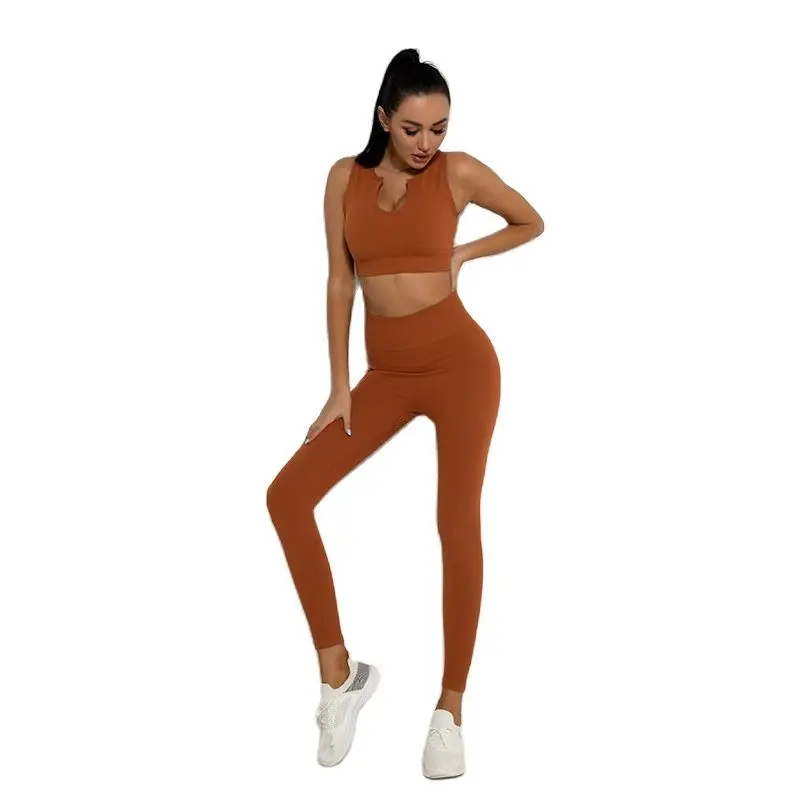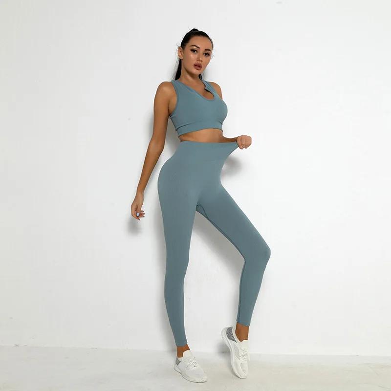 Спортивный комплект, женский костюм для йоги с круглым вырезом, бесшовная спортивная одежда, высокоэластичные штаны для фитнеса, укороченный топ, обтягивающие леггинсы, одежда для тренажерного зала