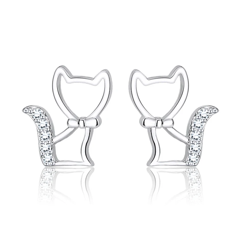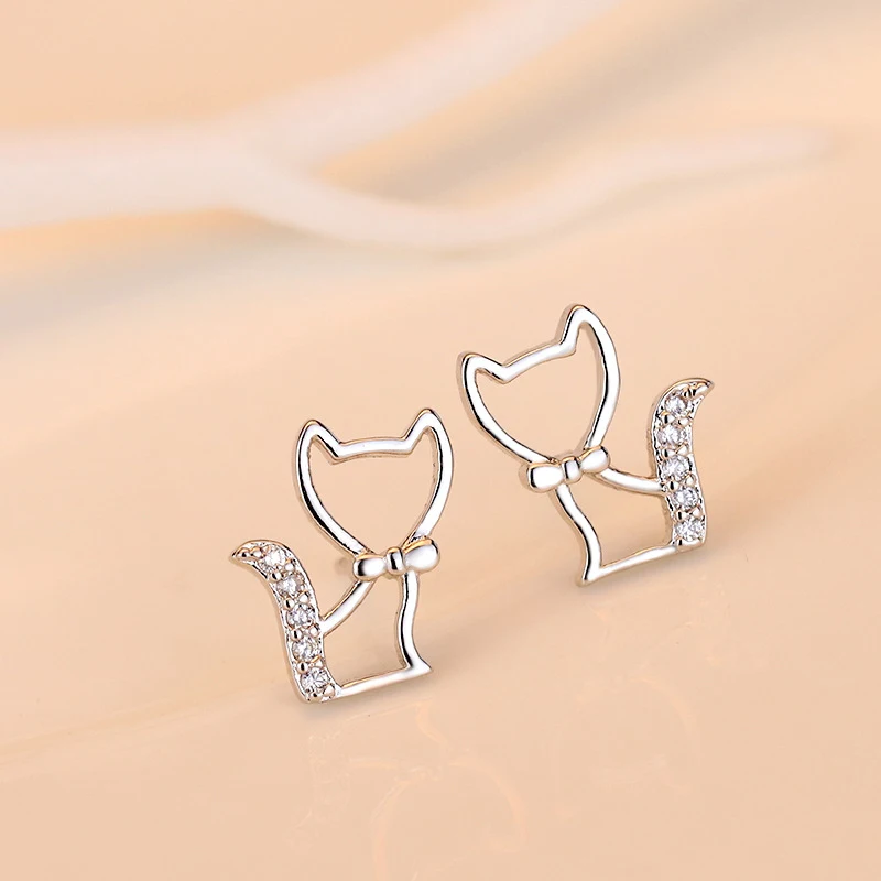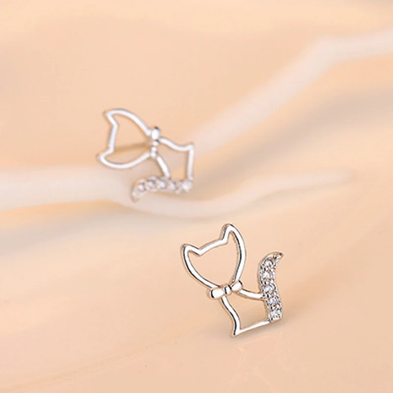 Креативные милые ажурные серьги бант для кошек изысканные серьги-гвоздики серебряного цвета с кристаллами циркония модные ювелирные изделия вечерние вечеринок для девушек