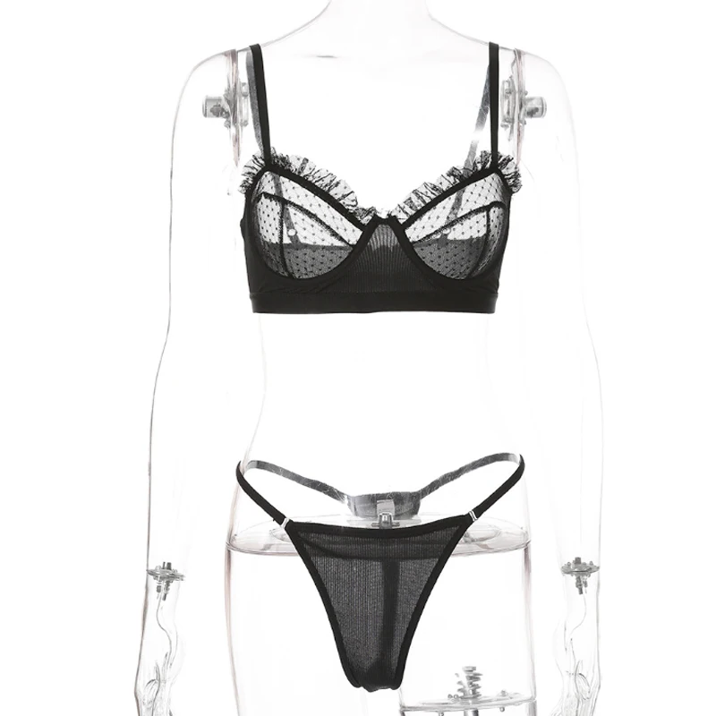 Комплект кружевного нижнего белья с рюшами, корсет под грудь, сексуальное женское нижнее белье, прозрачный бюстгальтер, вечерние комплекты, кружевное черное нижнее белье, бюстгальтер, бюстье