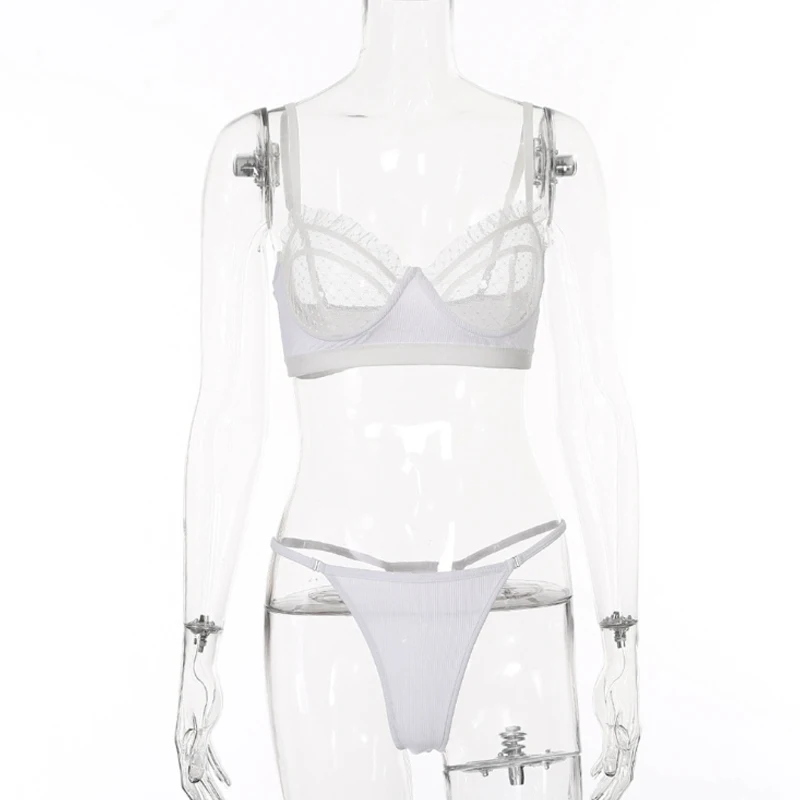 Рюшами Из Сетчатой Ткани 2 шт комплект с кружевным бюстгальтером, Д...
