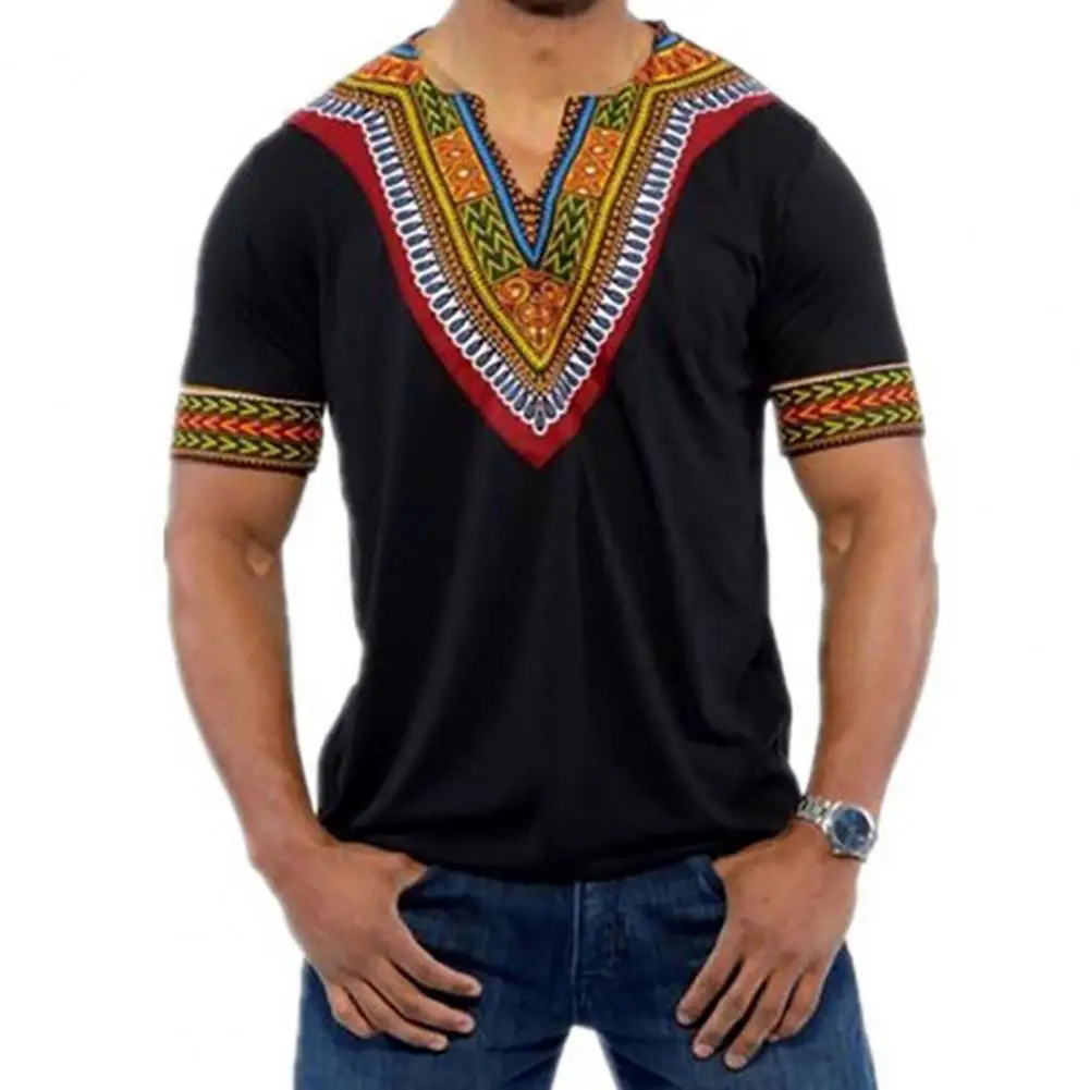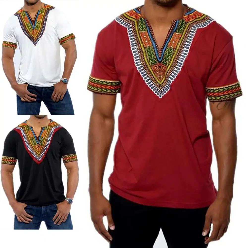 Модная мужская футболка с V-образным вырезом, топы с принтом, Африканские Этнические футболки с коротким рукавом, Мужская африканская одежда, новинка 2021, модная мужская одежда
