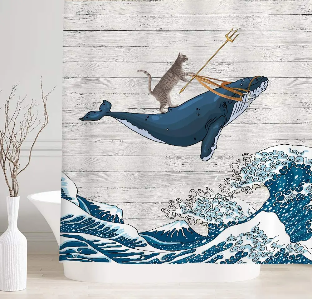 Водонепроницаемая занавеска для душа с забавным котом и Китом, чехо...