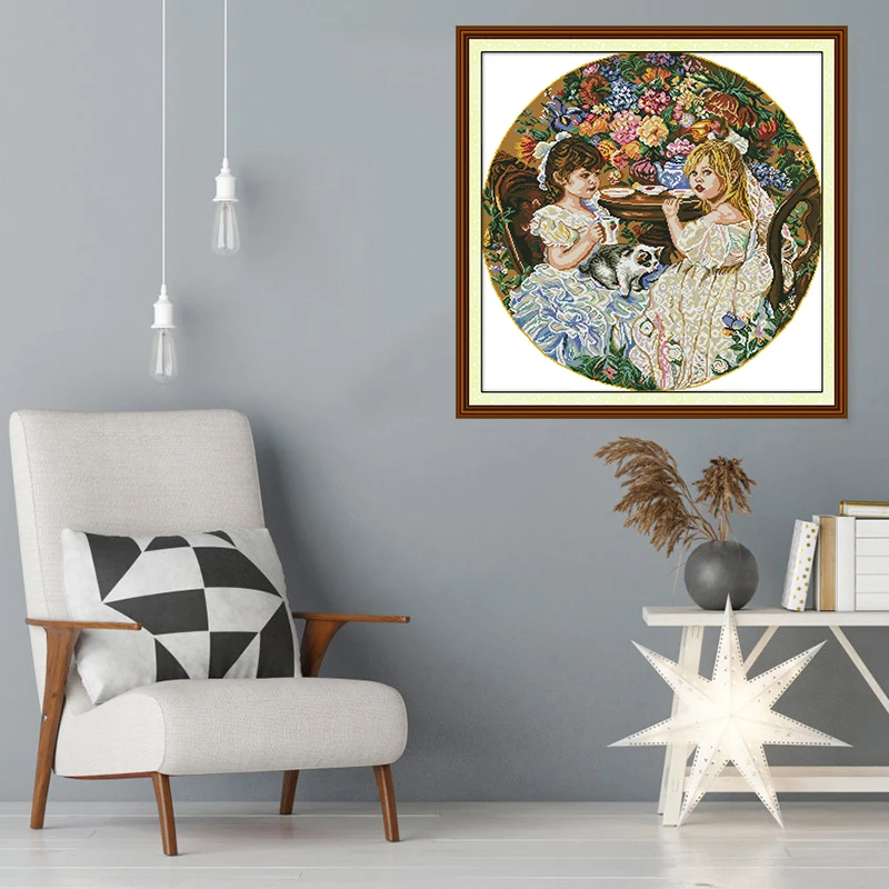 Послеобеденный чай время вышивки крестиком наборы узоров без принта...