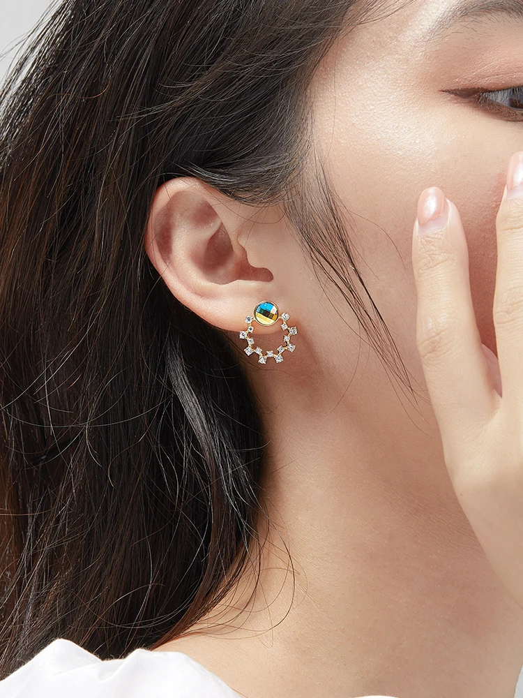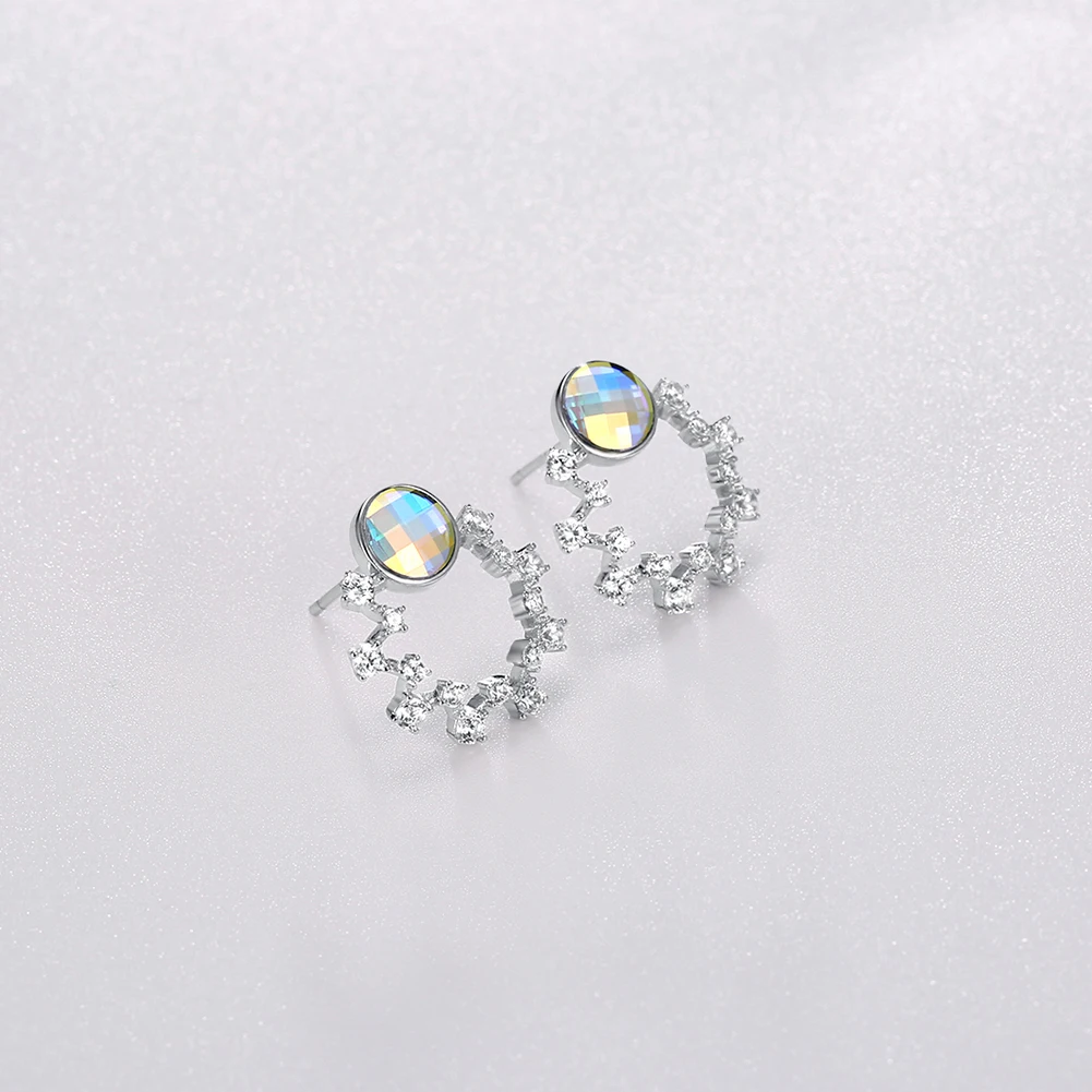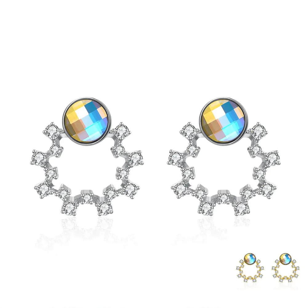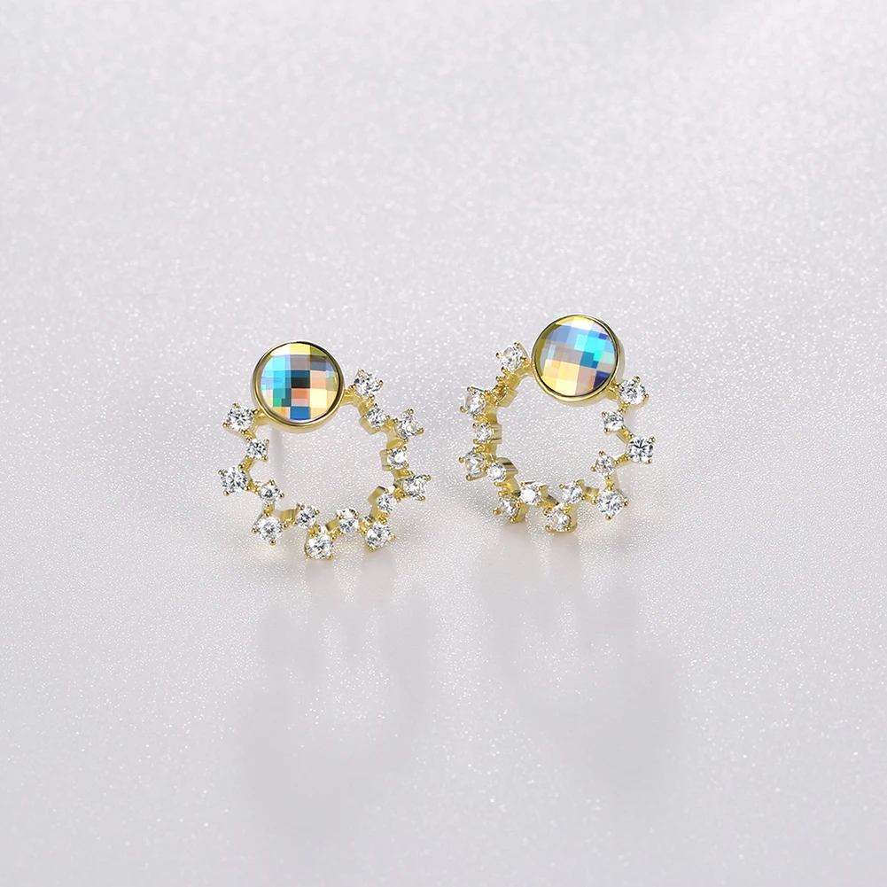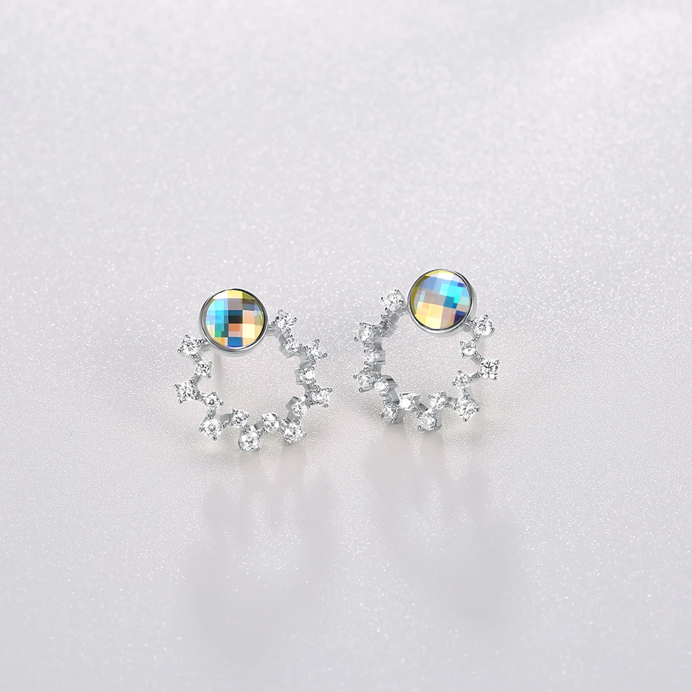 ZEMIOR S925 стерлингового серебра женские серьги милая цветочная гирлянда с красочные серьги-гвоздики с австрийским кристаллом, хит продаж, ювелирное изделие, подарок