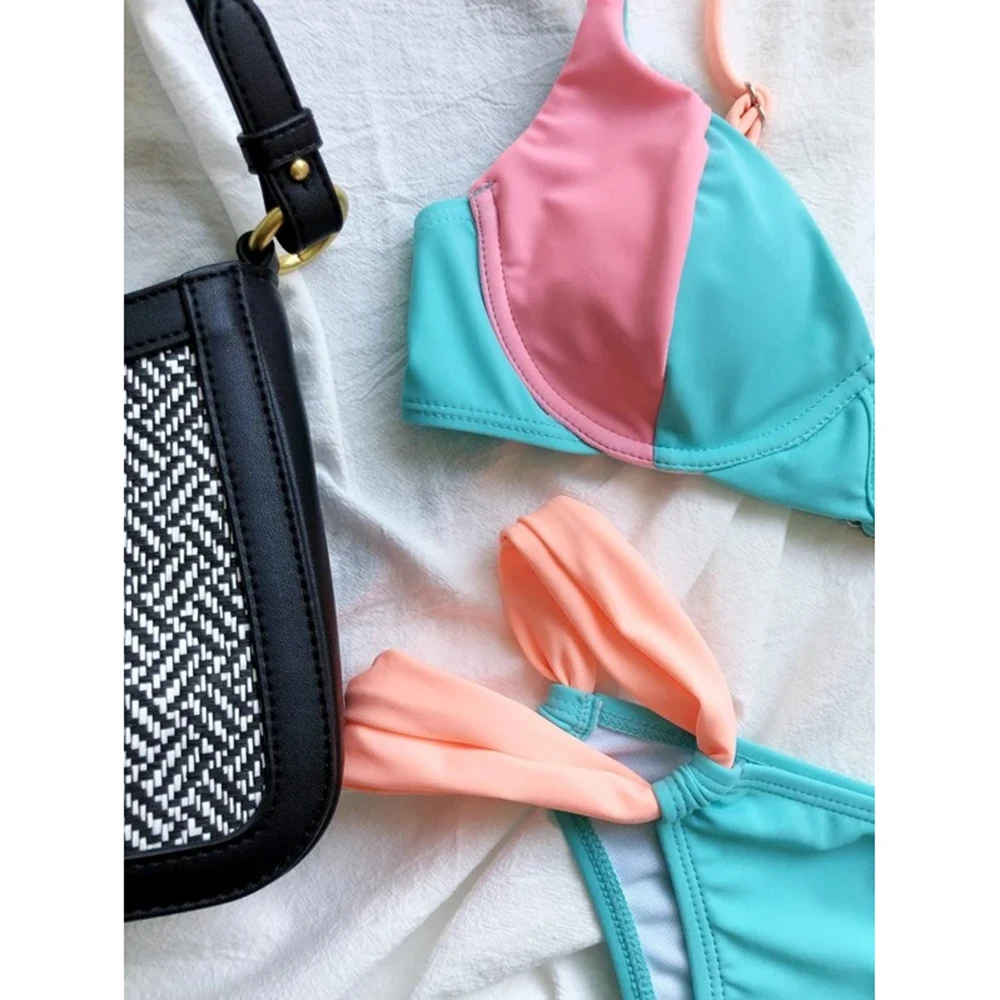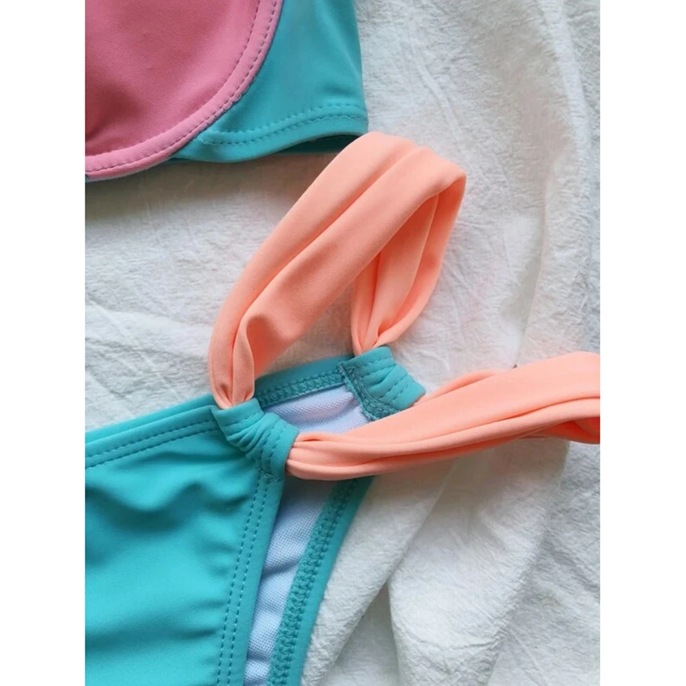 Милый лоскутный комплект из двух предметов, купальник, бикини, женс...