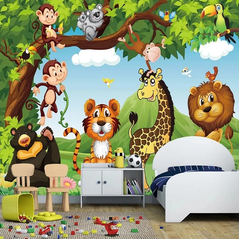 Пользовательские 3D фото детская комната мультфильм животных Тигр Лев постер для детской комнаты Спальня Настенная роспись самоклеющиеся обои