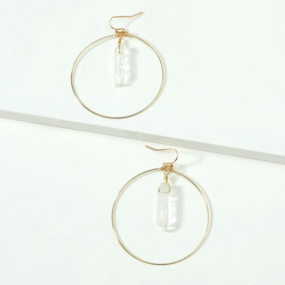 Модные женские серьги золотого цвета с круглой медной проволокой из натурального белого кварца