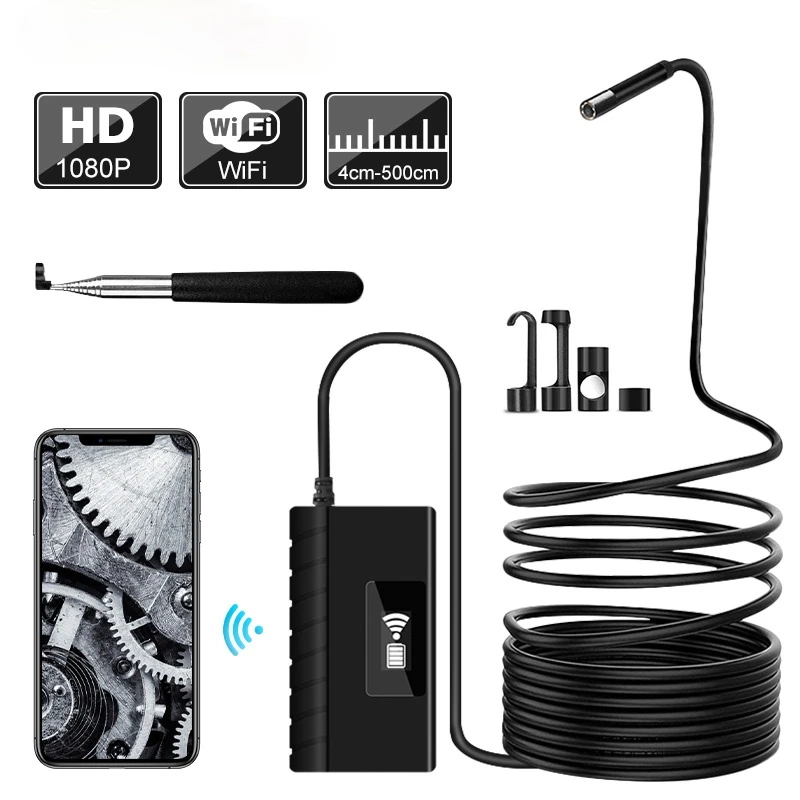 Камера-эндоскоп HD, раздвижная камера-бороскоп, 5,5 мм, 1080 пикселей, полужесткий USB-кабель, поддержка Wi-Fi, iOS, iPhone, планшетов