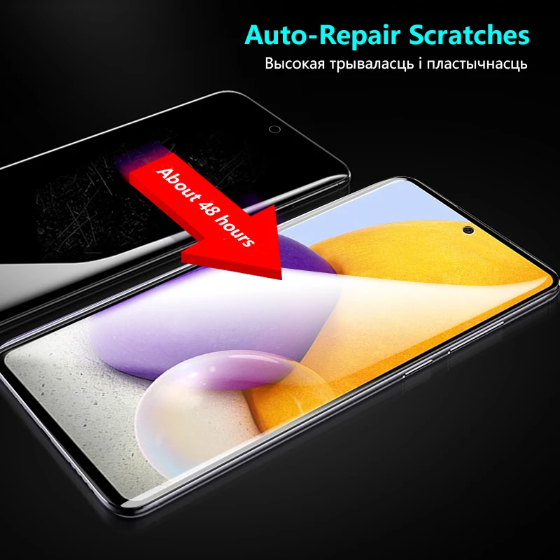 Бренд CHYI, новая невидимая гидратированная пленка для Samsung Galaxy A72, 5G, 6,7 дюймов, полное покрытие, защита экрана, невидимая, как оригинал0,15 мм ультра тонкий эластичный взрывозащищенныйОтобранный и использованный японский импортный Nano Tpu Материал и HARVES nanotechnology с отличной защитной производительностью. Он имеет супер высокий коэффициент пропускания и высокое восстановление оригинального цвета экрана. Он поддерживает Антибликовое покрытие для предотвращения бликов. Устойчивые к царапинам цветы и выдув. На его поверхности используется нанометровое тонкое масляное покрытие, которое обладает защитой от отпечатков пальцев, маслостойкостью и эффективно защищает и фильтрует ультрафиолетовые лучи. Он также сплавил передовые технологии защиты экрана. Его 3d окантовка делает пленку легко подходящей для экрана, лучше сочетать пленку и корпус телефона. В то же время, нет риска повредить наши руки в процессе. Он создает идеальные края; Делает пленку тоньше, четче и безопаснее, 0,15 мм ультра тонкий.