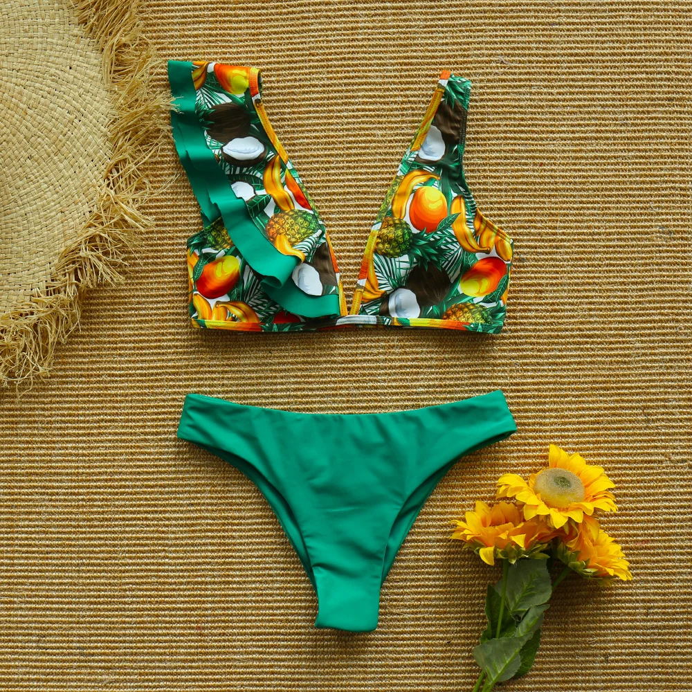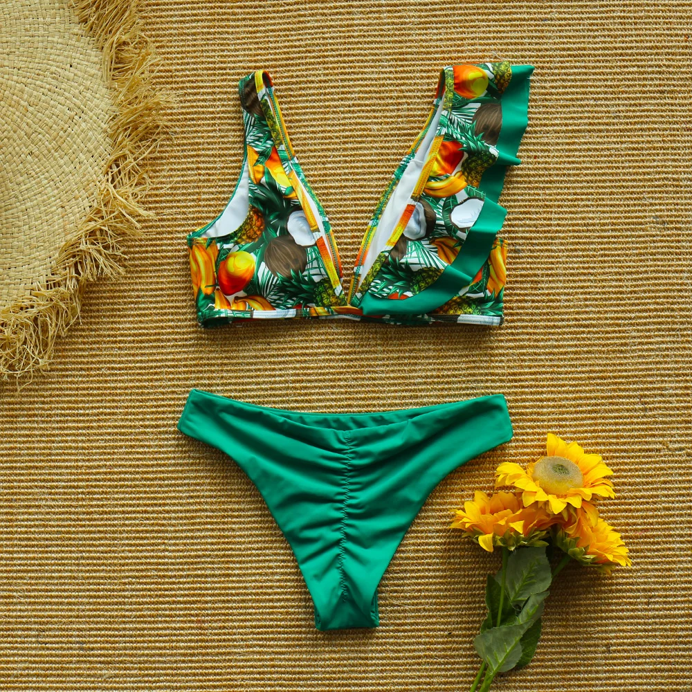 Сексуальный комплект бикини с оборками, новинка 2021, бразильский купальник пуш-ап с V-образным вырезом, женский купальник, купальный костюм, летняя пляжная одежда, женское бикини