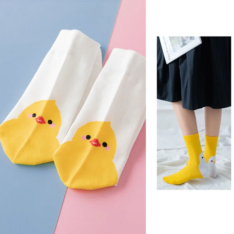 Женские носки, забавные носки с мультяшным рисунком животных, милые женские носки с принтом утки в стиле Харадзюку