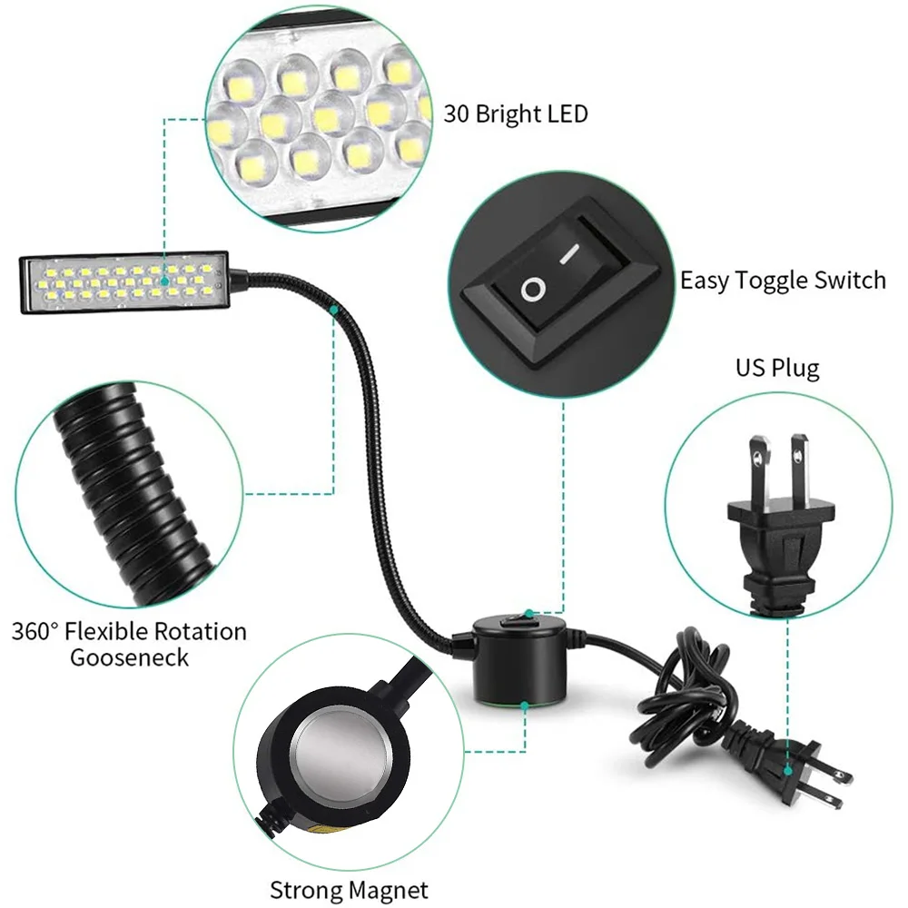 Портативная Рабочая лампа для швейной машины, светильник с магнитным основанием для домашнего фрезерного станка, токарный станок, 15 светодиодов, 30 светодиодов