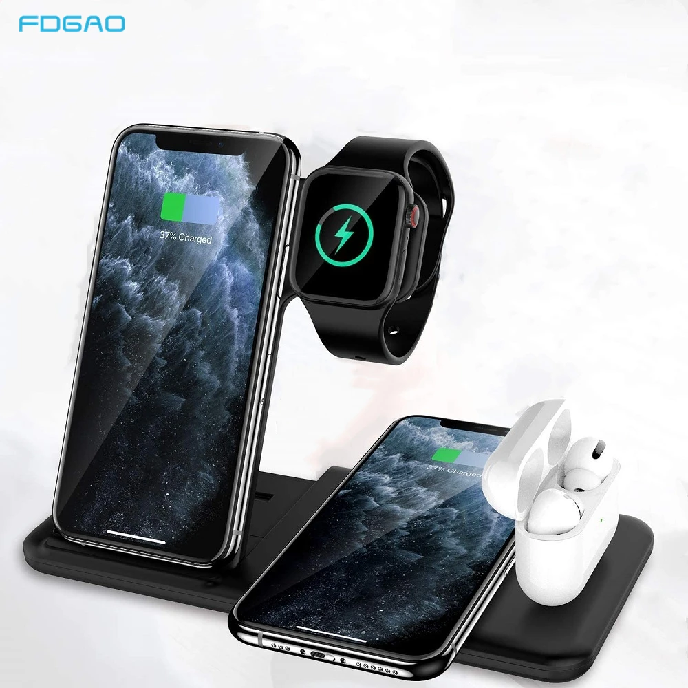 Беспроводное зарядное устройство Qi 15 Вт, док-станция для iPhone 12 11 XS XR X 8 Apple Watch 6 5 4 3 2 Airpods Pro 4 в 1, подставка для быстрой зарядки