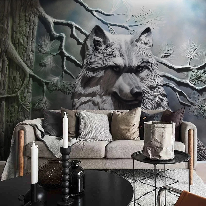 Настенные обои на заказ, европейские 3D стереоскопические тисненые нетканые обои с изображением леса и волка, украшение для гостиной, ресторана, спальни, водонепроницаемые