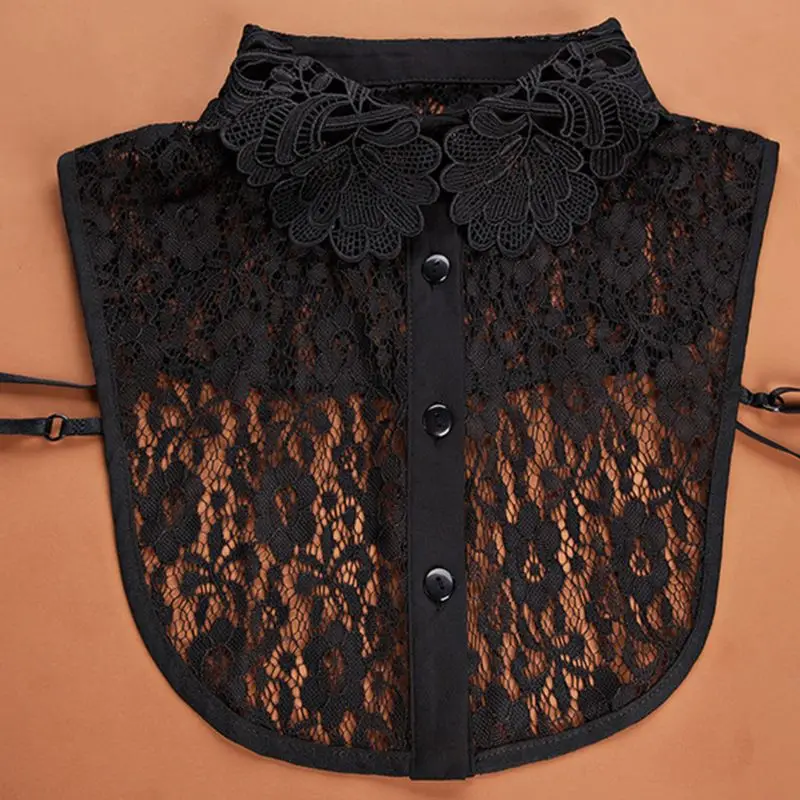 Женская блузка, свитер с круглым вырезом, ложный воротник, съемная прозрачная вышитая Цветочная кружевная однотонная полурубашка, одежда с завязкой на пуговицах