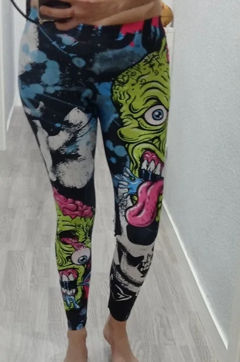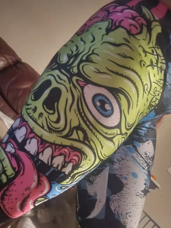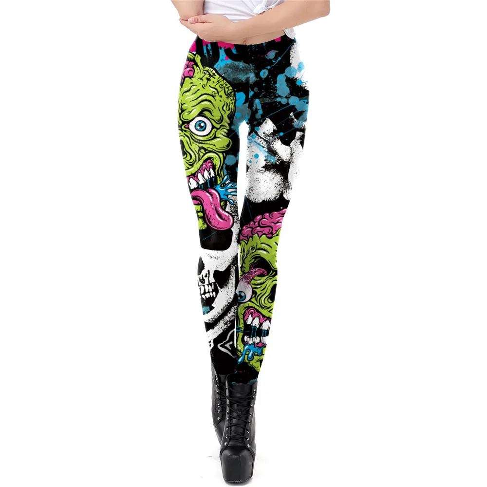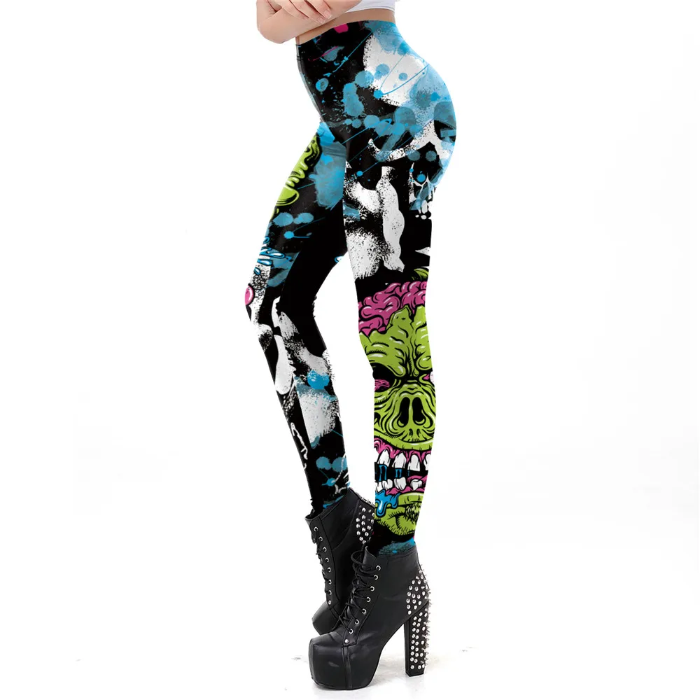 Обтягивающие леггинсы FCCEXIO для женщин, спортивные пикантные обтягивающие леггинсы для фитнеса с 3D принтом черепа на Хэллоуин, женские чулки, брюки
