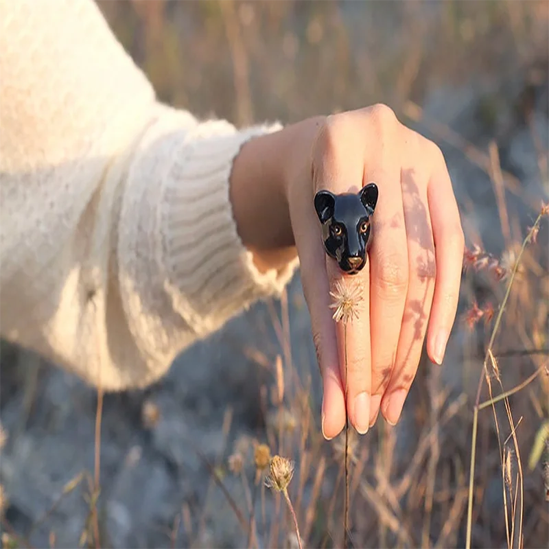 Оптом Bluk предлагает креативные модные кольца унисекс с черной головой собаки животного для женщин и мужчин ювелирные изделия вечерние Ринок аксессуары