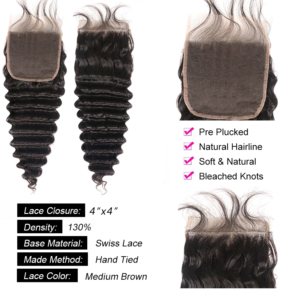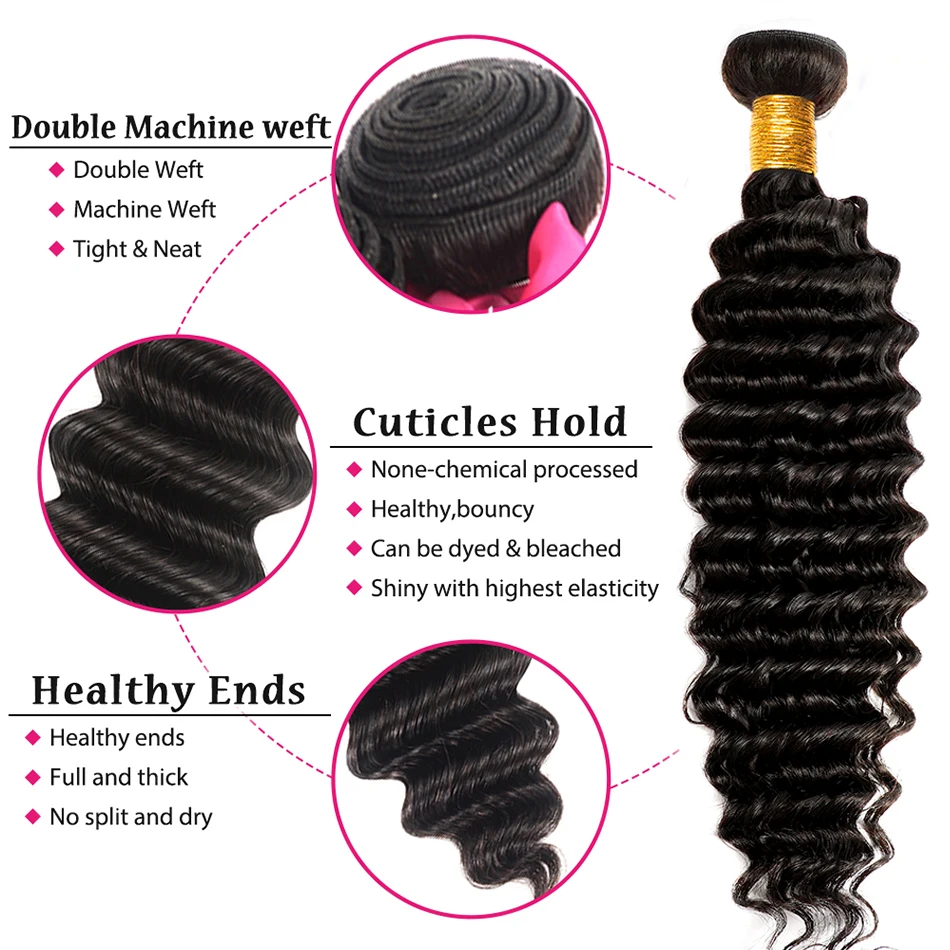 30 дюймов глубокая волна пряди с закрытием человеческие волосы пряди с фронтальной бразильские вплетаемые волосы свободные глубокая волна пряди с закрытием