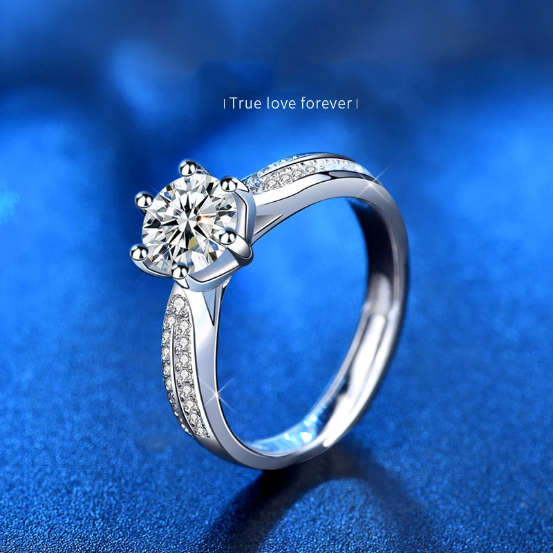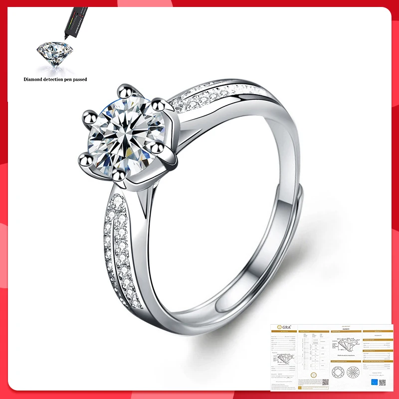 Женское Обручальное кольцо с муассанитом, регулируемое кольцо из се...