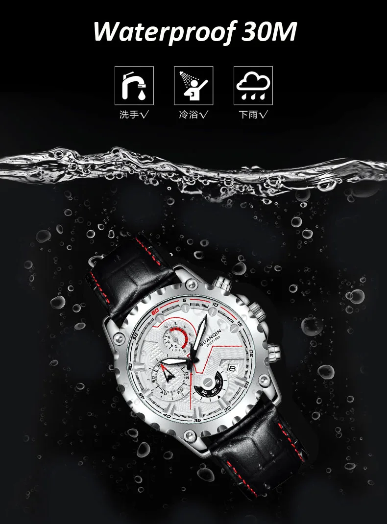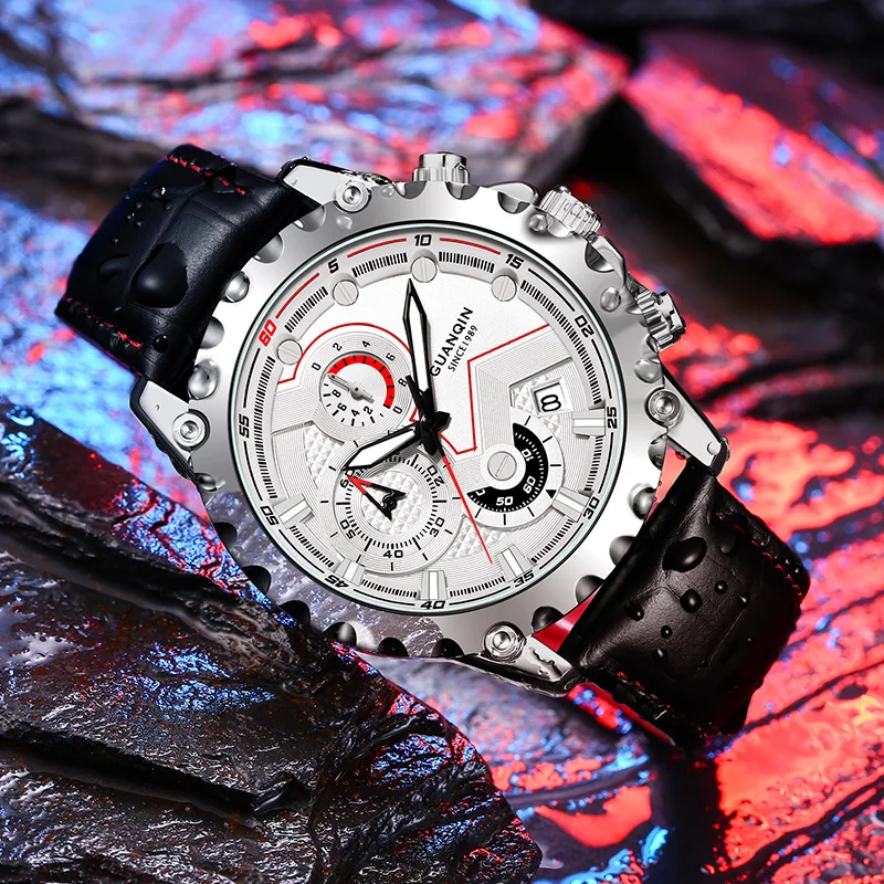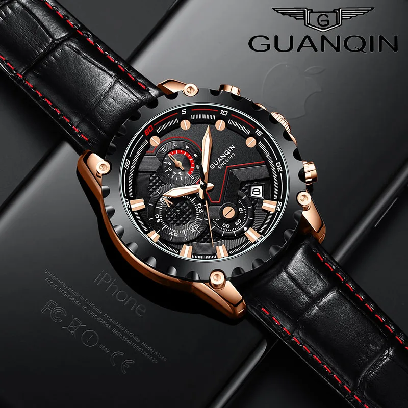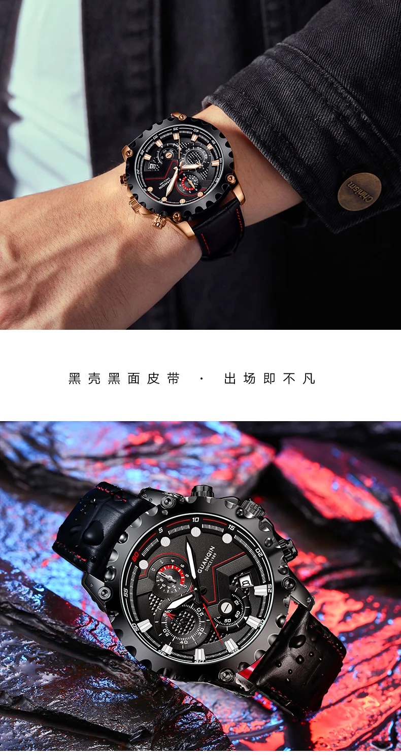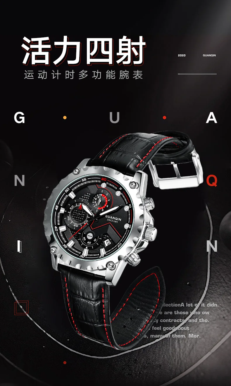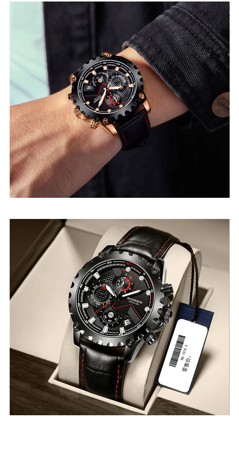 Часы наручные GUANQIN мужские с хронографом, повседневные спортивные брендовые Роскошные модные в стиле милитари