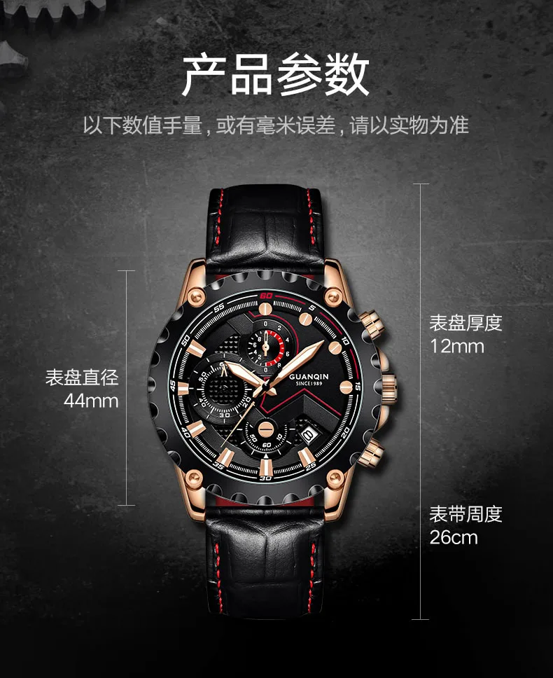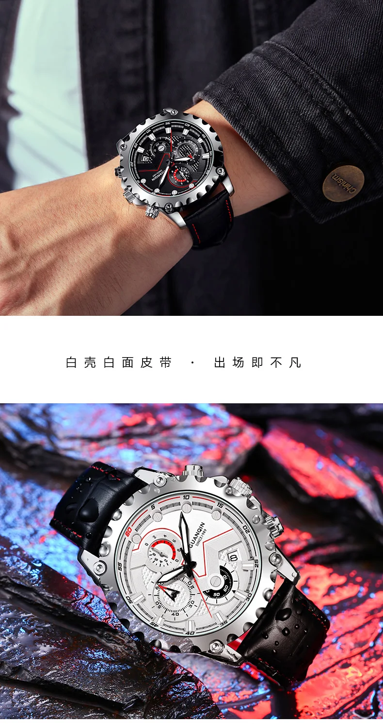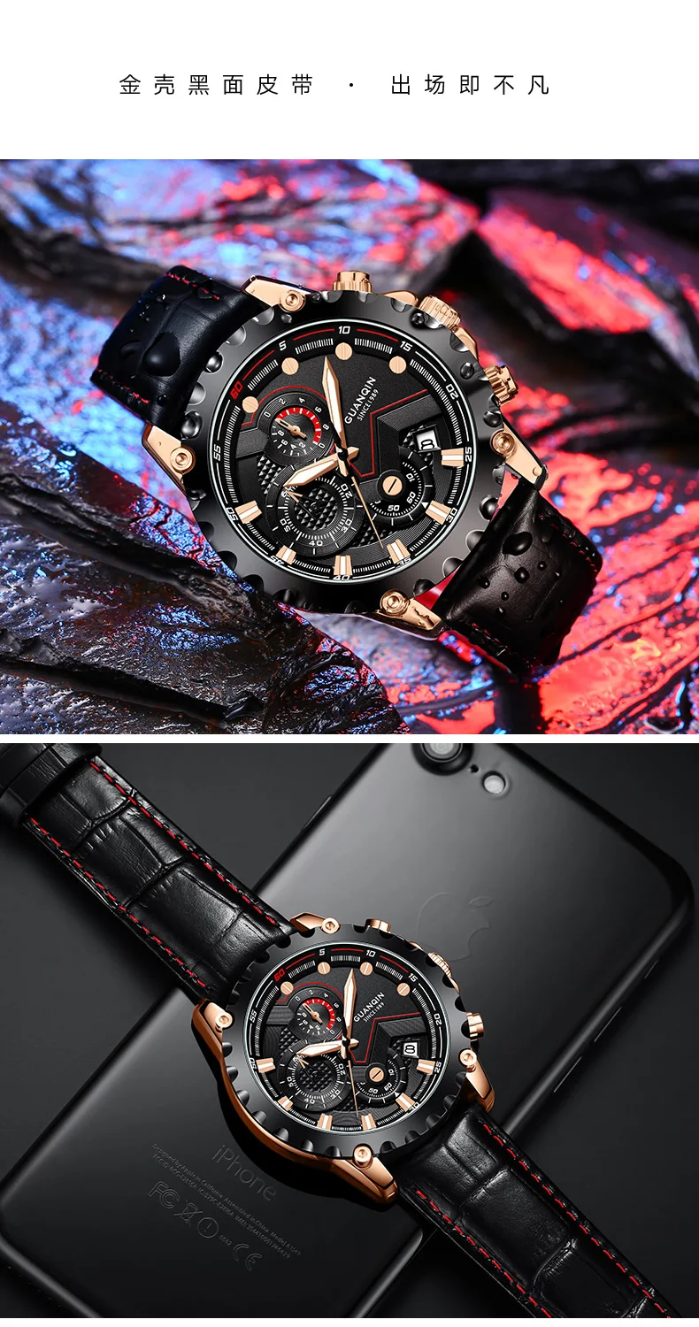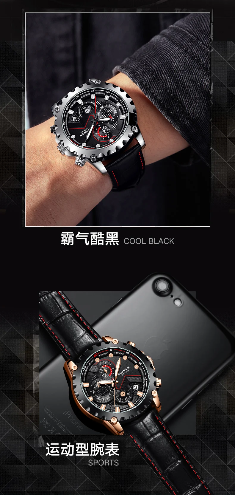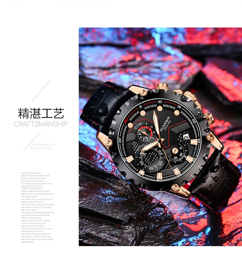 Часы наручные GUANQIN мужские с хронографом, повседневные спортивные брендовые Роскошные модные в стиле милитари