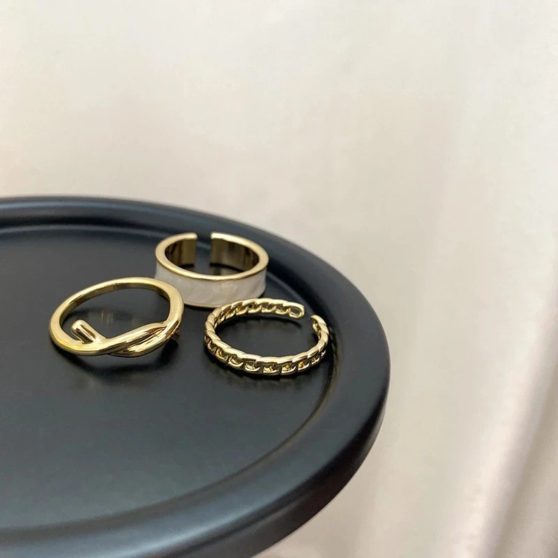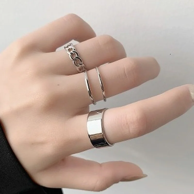 3 шт.компл. корейские винтажные открытые кольца с металлической цеп...