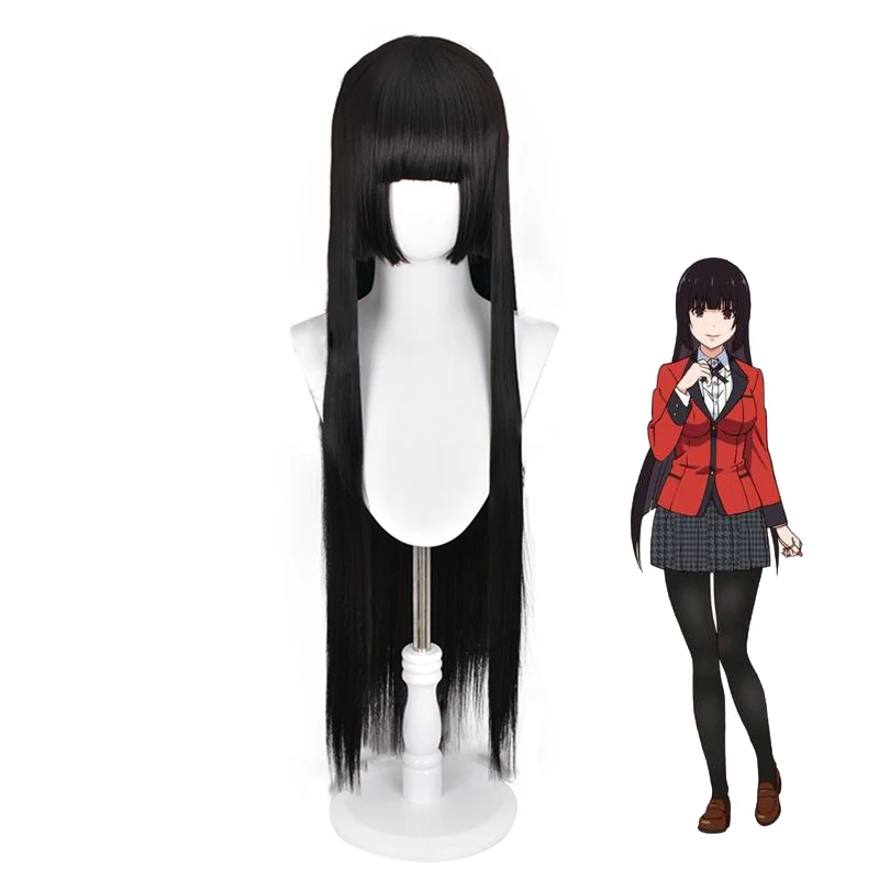 Парик для косплея Kakegurui Yumeko Jabami, прямые черные термостойк...