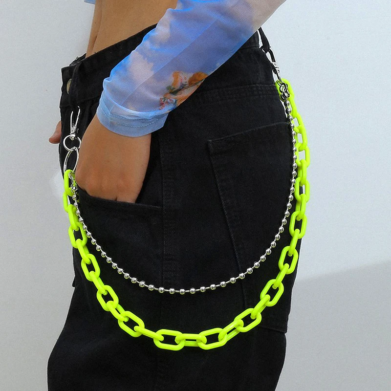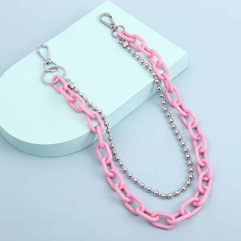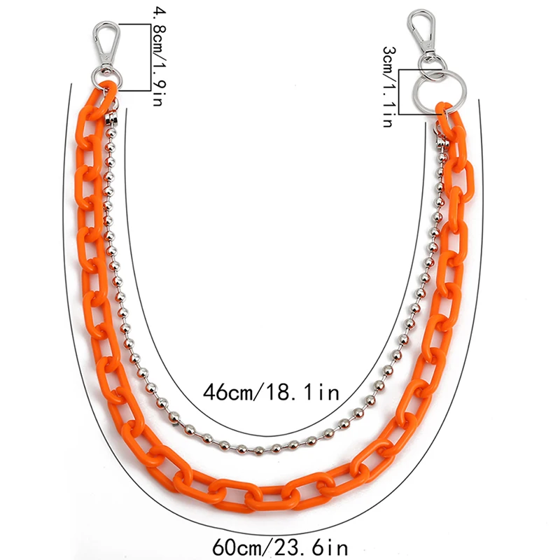 Особенности:Материал: пластик, сплавЦвет: желтый, зеленый, черный, оранжевый, белый, розовыйРазмер: как показано на рисункеПосылка входит:Цепочка для брюк 1 шт.