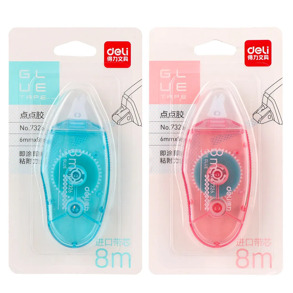 Сменная двусторонняя клейкая лента в горошек, канцелярские принадлежности, офисный диспенсер клея, стержень с запасным стержнем, случайный цвет