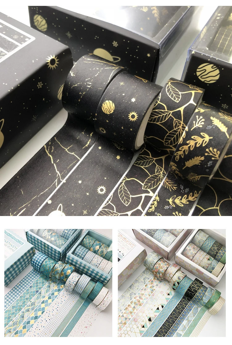 10 рулон Золотая блестящая бумага васи декоративные ленты клей маля...