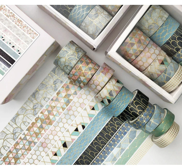 10 шт., геометрическая форма набор декоративного скотча Васи золото...