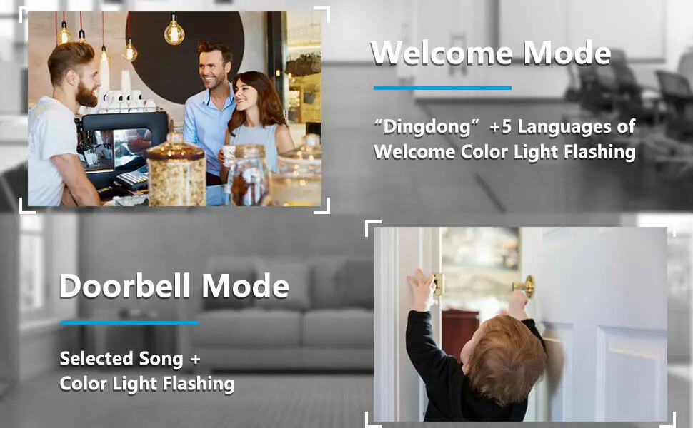 С приветствиями/дверным звонком/сигнализацией/красочный светильник/Ночной светильник, вы можете установить правильный режим в соответствии с вашими потребностями.