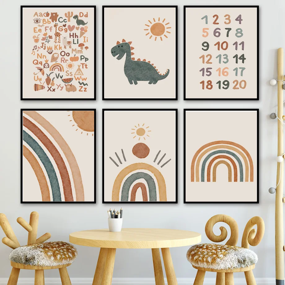 Акварель мультфильм Динозавр облако питомник стены искусства холст ...