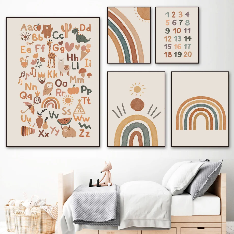 Инженерный автомобиль Алфавит Номер детской стены Искусство Холст К...