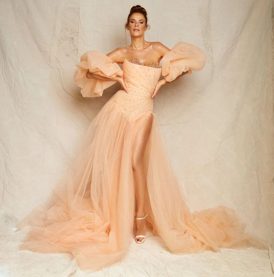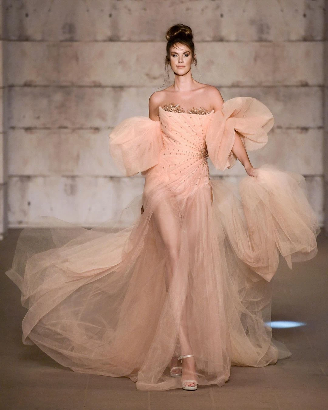 Экстра пышные тюлевые платья для беременных без бретелек, с разрезо...