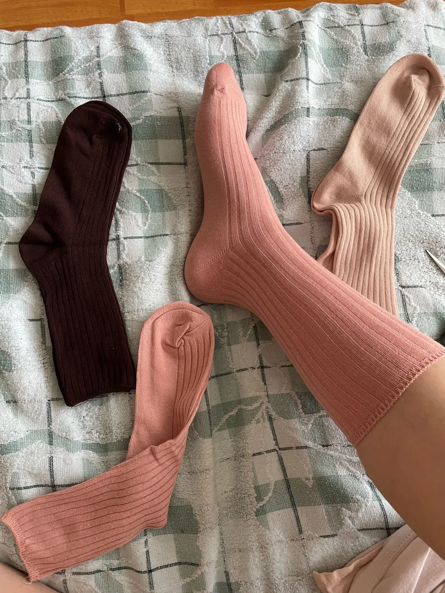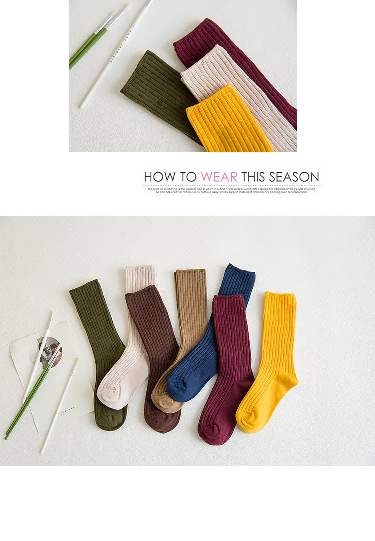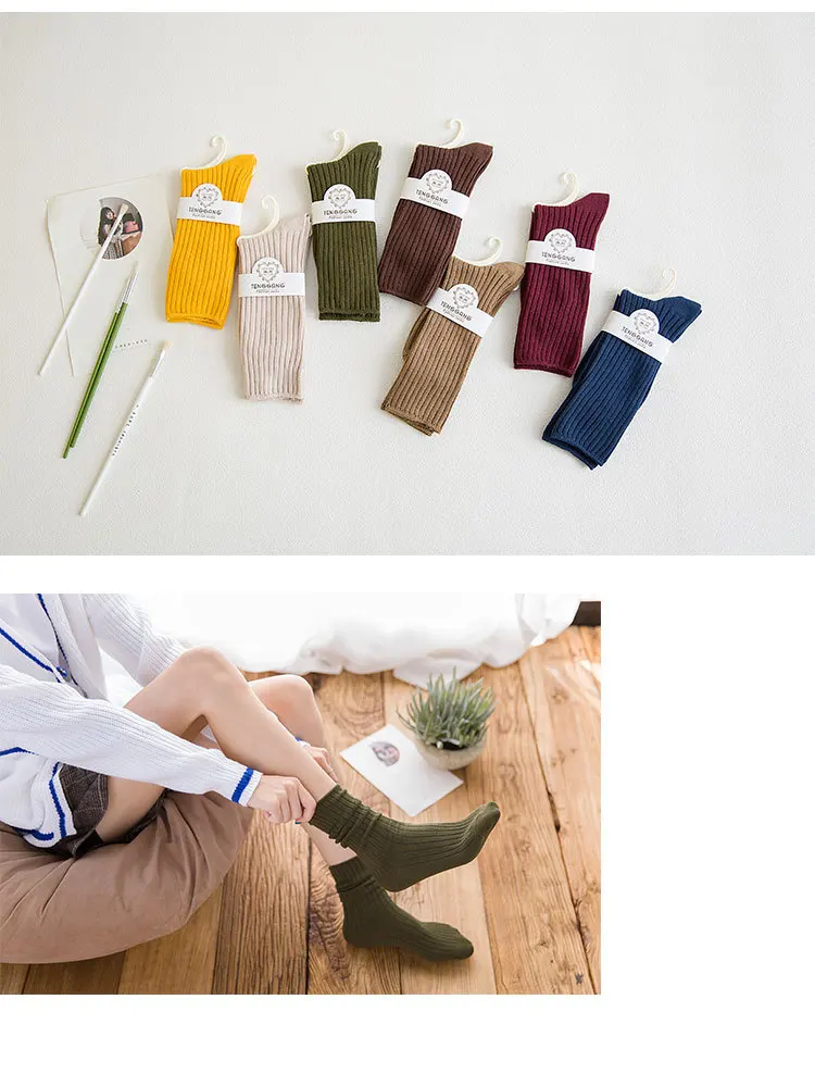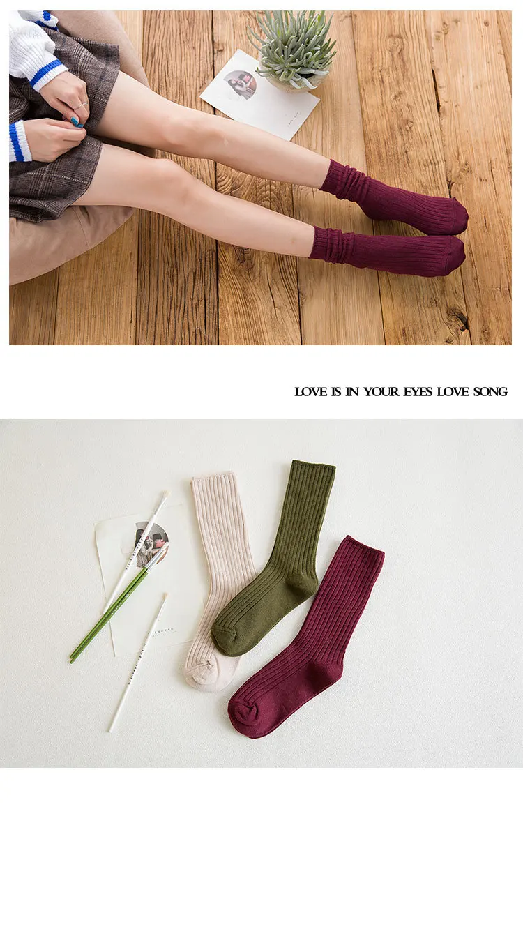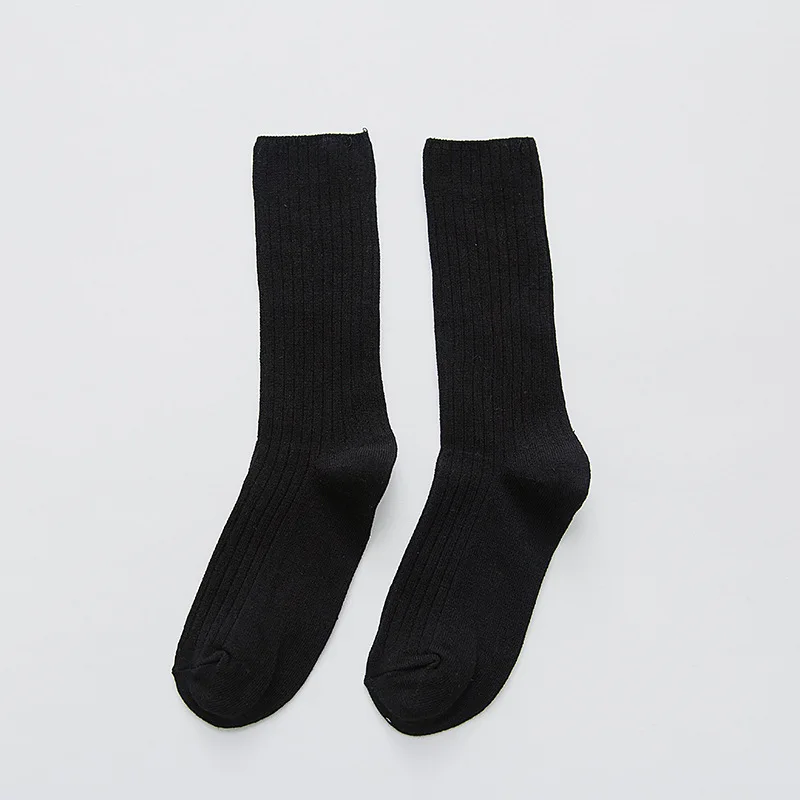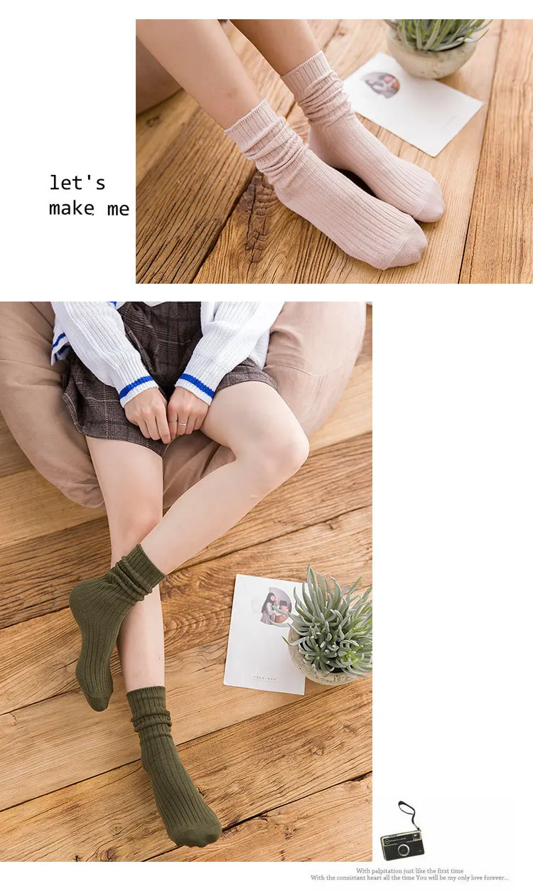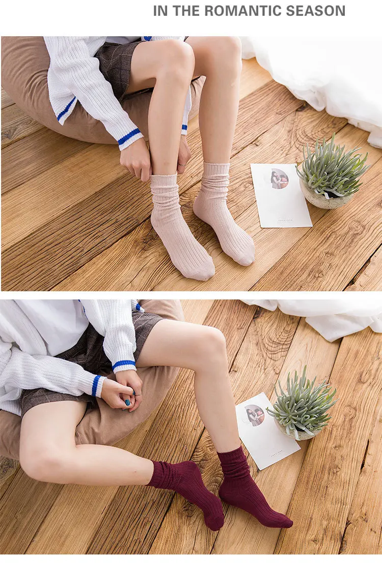 Женские хлопковые свободные носки в японском стиле Харадзюку, однотонные вязаные длинные носки в Корейском стиле для старших классов, черные розовые, дизайнерские
