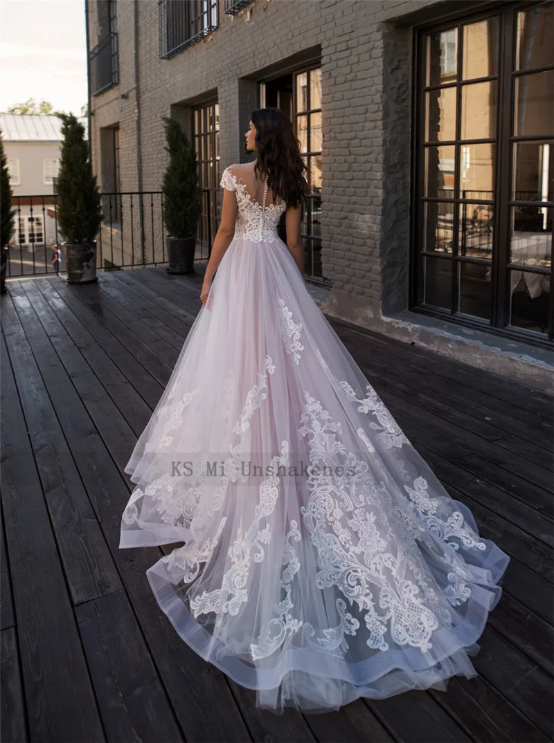 Женское свадебное платье с кружевной аппликацией, розовое винтажное платье невесты в деревенском стиле, платье с рукавом-крылышком, для сада, 2021