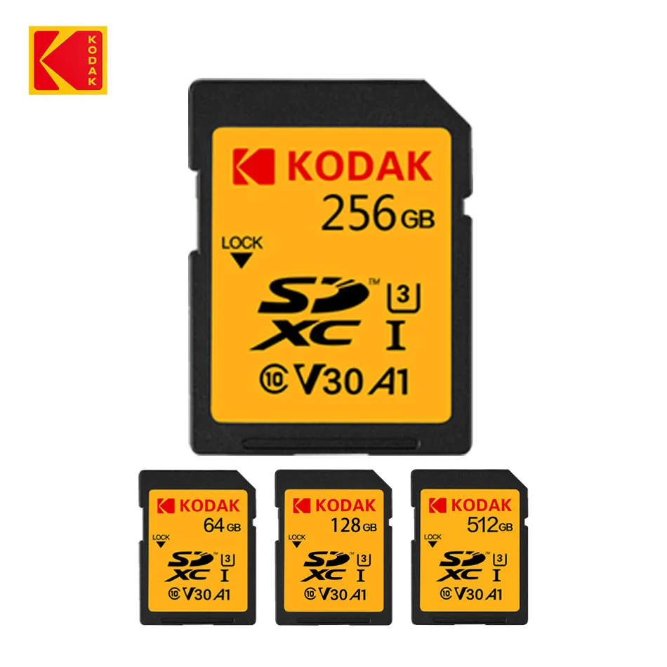 Карта памяти KODAK, высокоскоростная карта памяти SDHCSDXC SD U1 U3 32 Гб 64 Гб 128 ГБ 256 ГБ 512 ГБ, SD-карта для ноутбуков Canon, Nikon, DSLR
