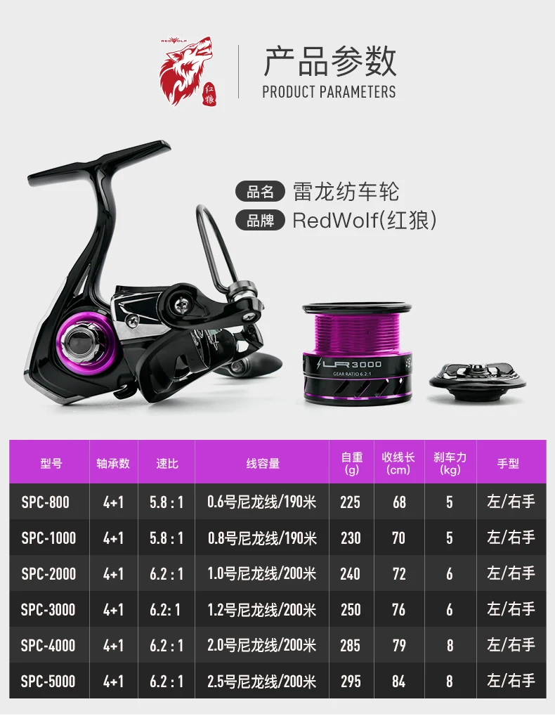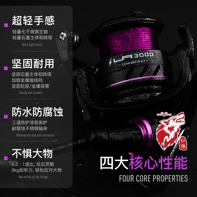 Катушка для спиннинга RedWolf LR 6,2: 1, 4 + 1BB, серия 1000-4000, с защитой от коррозии, макс. нагрузка 8 кг, Морская Рыбалка снасти