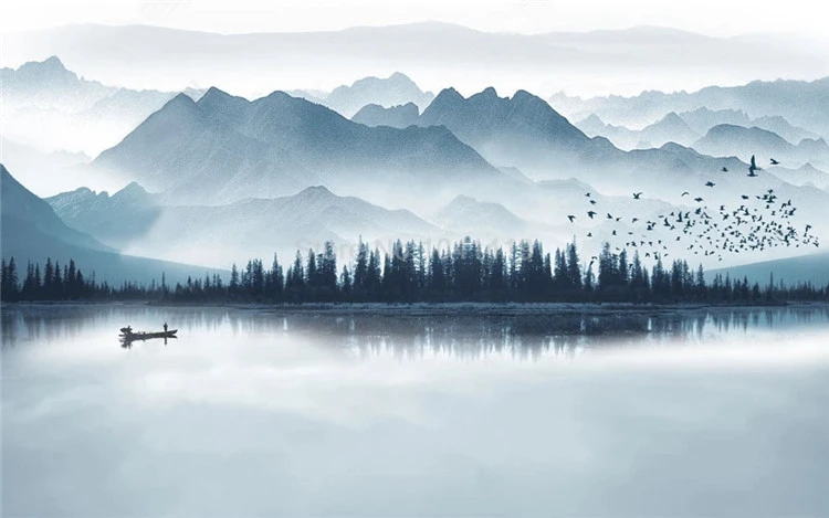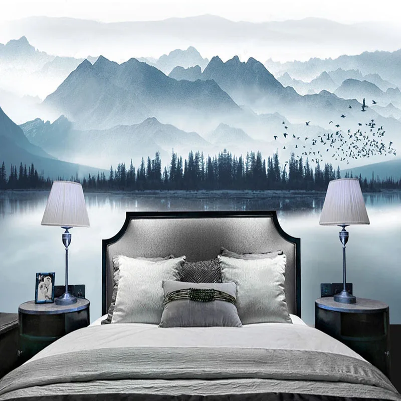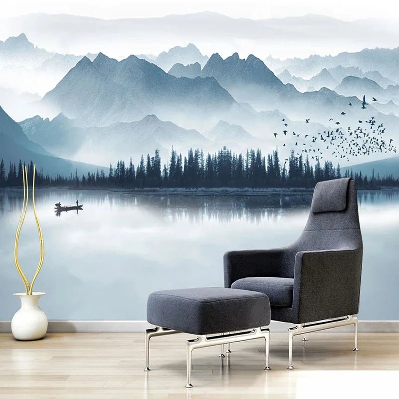 Пользовательские фото обои в китайском стиле живопись чернилами пейзаж горы птица Фреска гостиная спальня диван фон обои