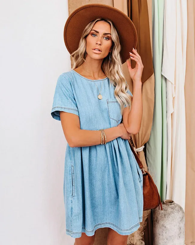 Платья для женщин 2021 летнее платье свободная стильная одежда для маленьких девочек джинсовое платье с коротким рукавом женская Милая одежда с круглым вырезом