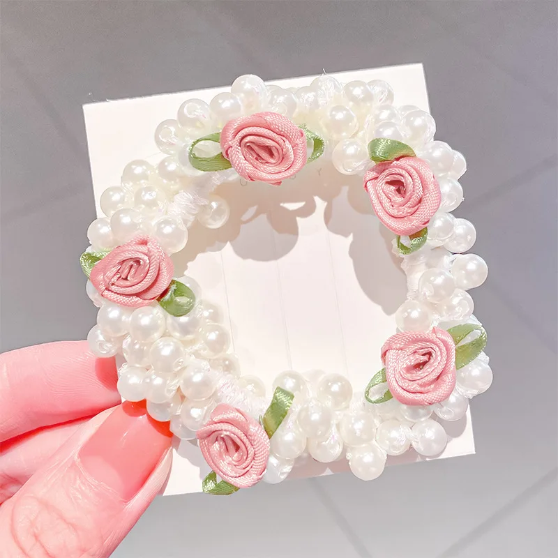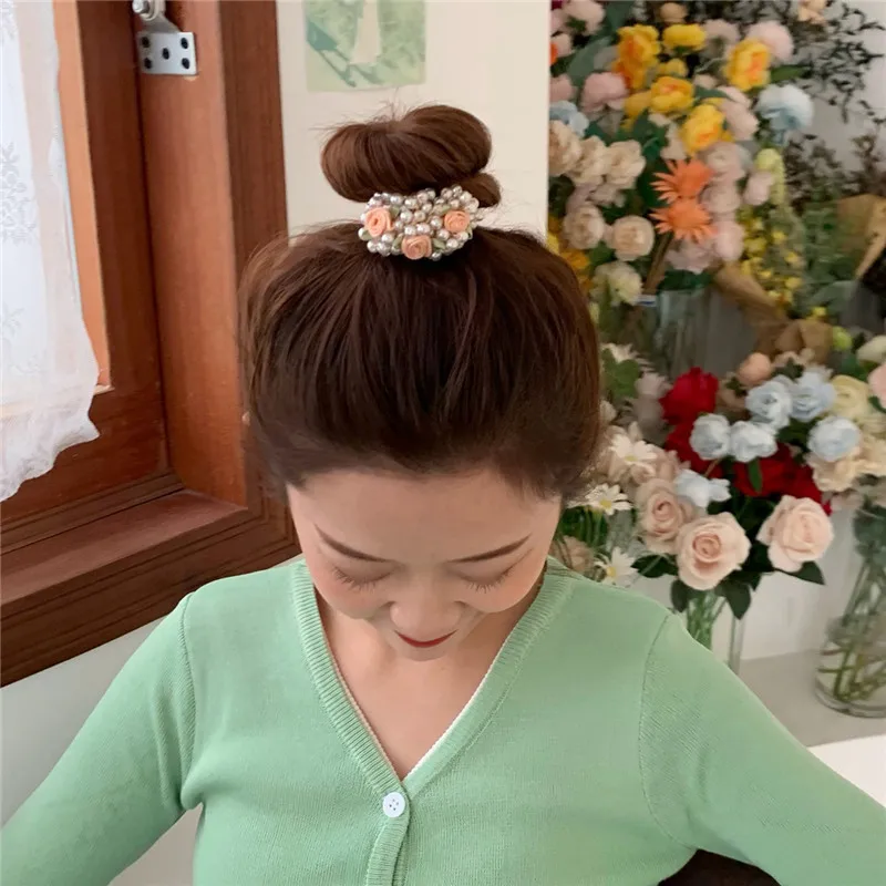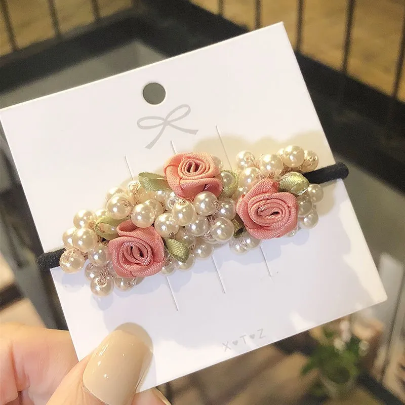 Ruoshui элегантная женская резинка для волос с искусственным жемчугом Цветочная эластичная резинка для волос женские резинки аксессуары для волос для девочек резинка тиара