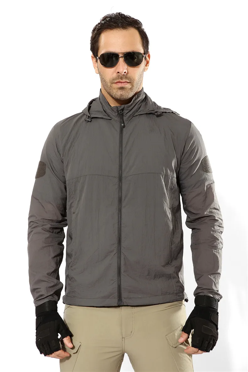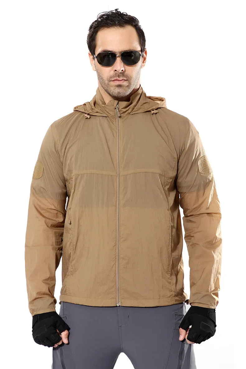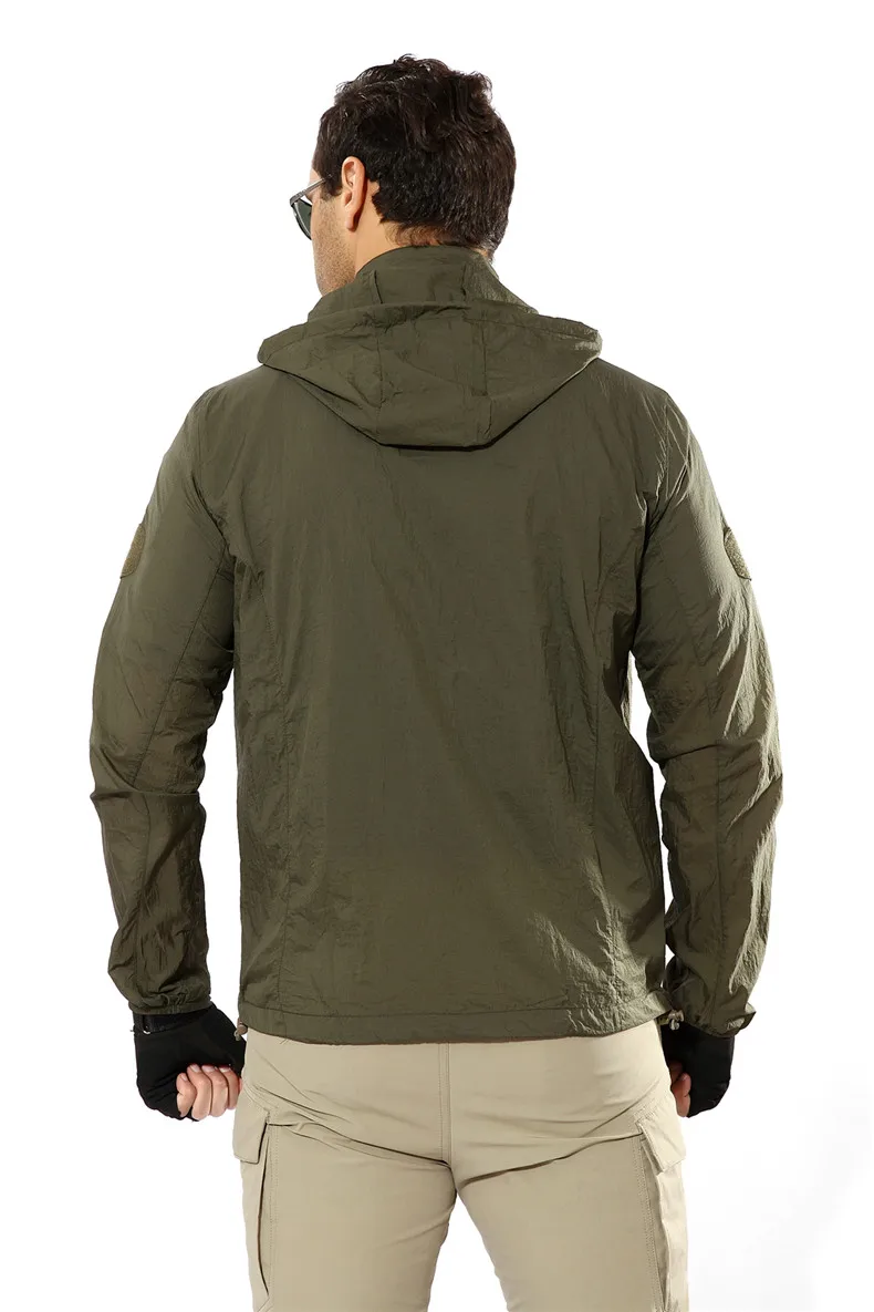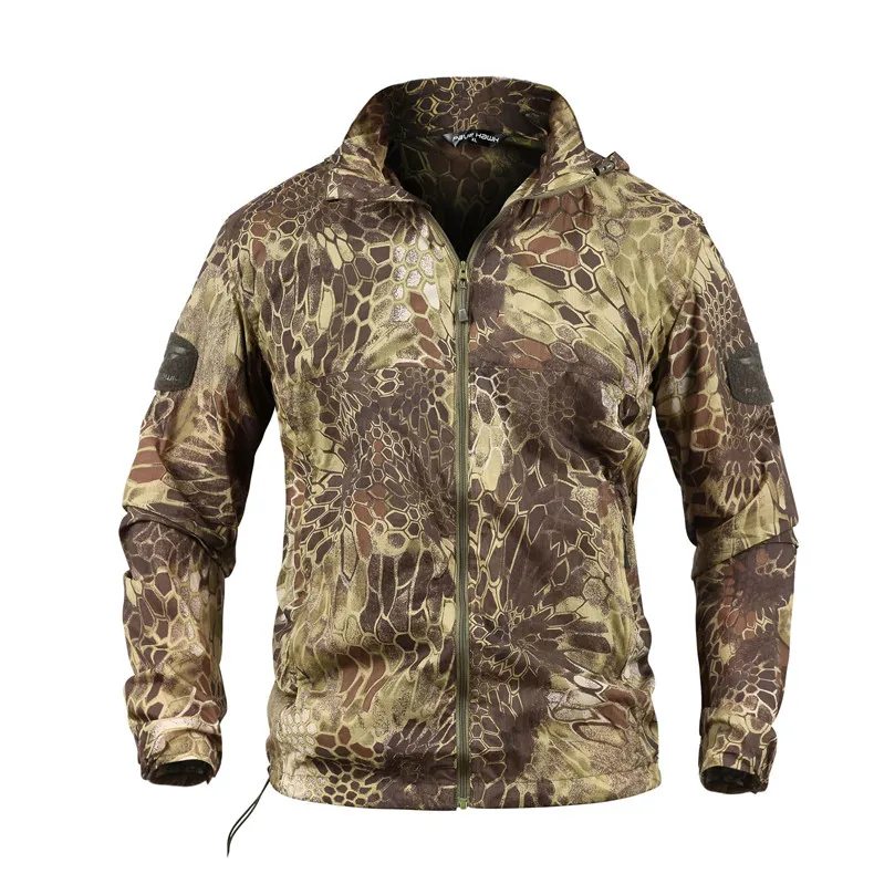 Куртка мужская быстросохнущая, тонкая, водонепроницаемая, тонкая камуфляжная, с капюшоном, от солнца, в стиле милитари