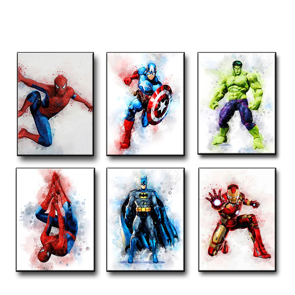 Постер Marvel, Картина на холсте, Человек-паук, Железный человек, Халк, супергерой, украшение для дома, настенное искусство, подарок на день рождения, декор для детской спальни