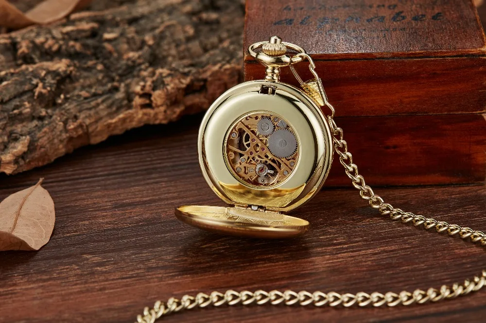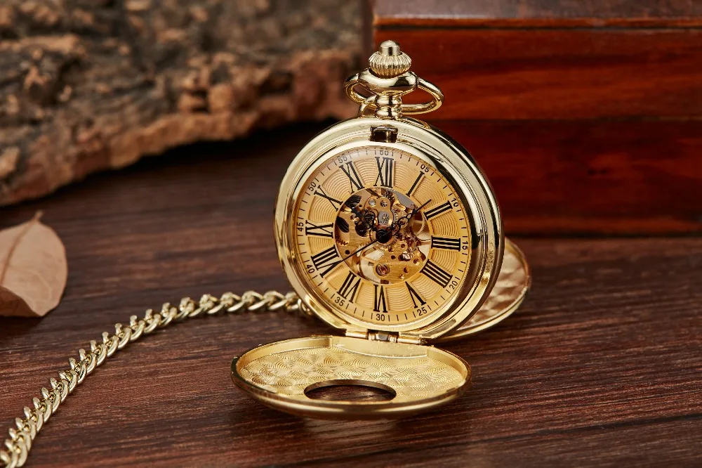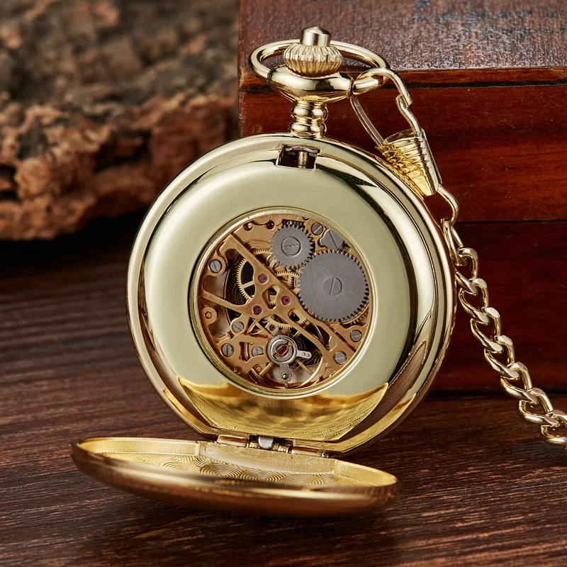 Рождественский подарок, гладкие Механические карманные часы золотого цвета для мужчин, женщин, мужчин, стильный ретро брелок, ручной Ветер, двойной Охотник